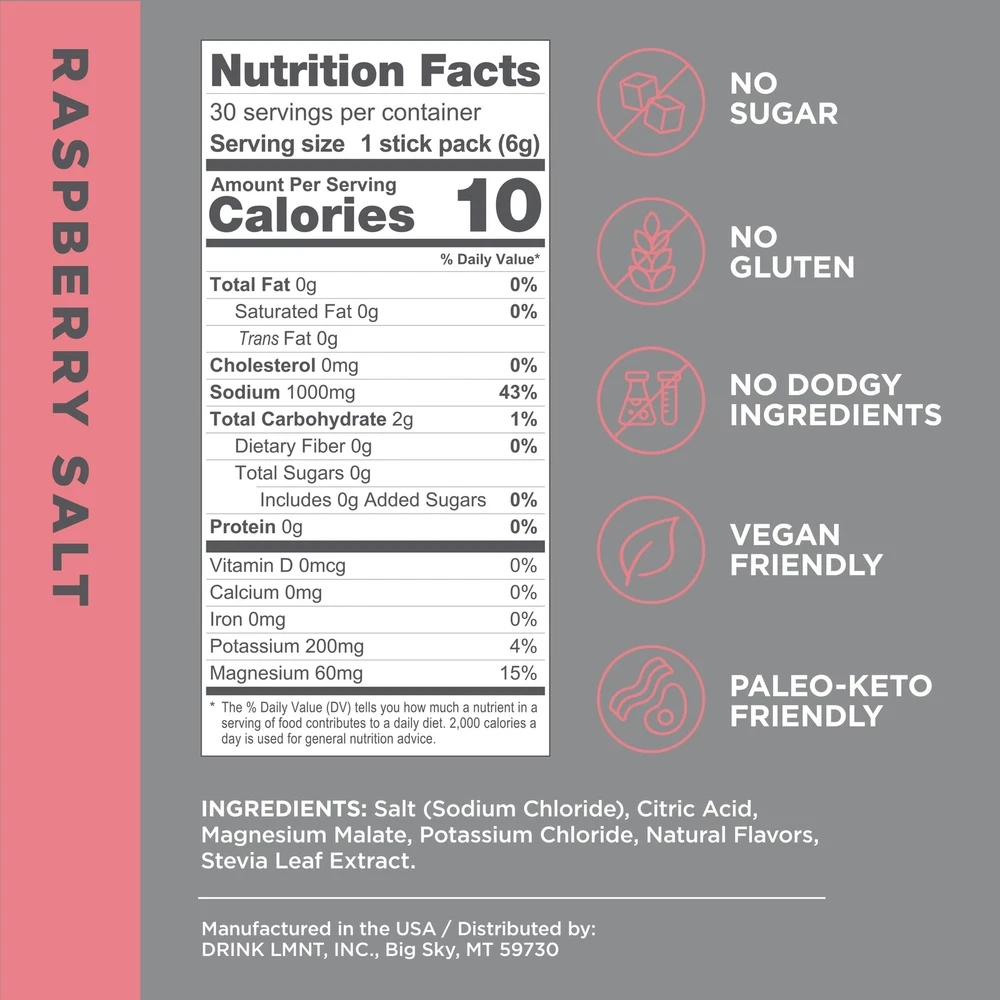 LMNT Zero Sugar Electrolytes - Raspberry Salt | Drink Mix | 30 Count