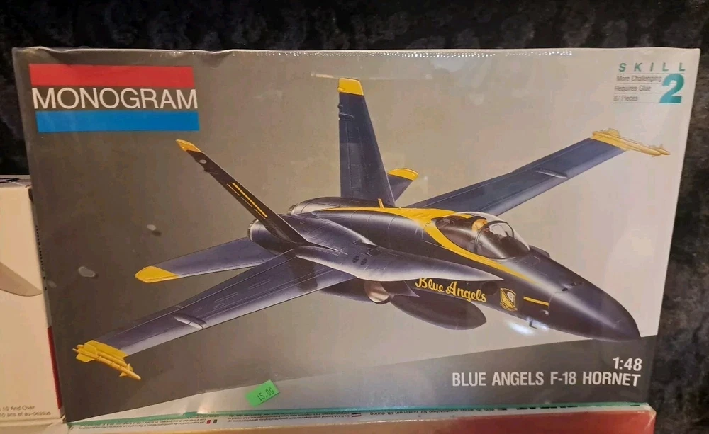 This lot of 4 model aircraft kits features a Blue Angels F-18 Hornet, an F-14A Tomcat, a F-15 Eagle, and a Lindberg A-4 Skyhawk aircraft. The 1:48 scale set is from the Military Aircraft franchise and is designed for ages 8-11 years. The kit includes aircraft models with a skill level of 2 (easy) and is themed around militaria. Features include unpainted parts, making it a fun project for model enthusiasts. Unused & New In Box. THESE MODEL KITS COME TO YOU FROM A PET FREE AND SMOKE FREE HOME! THESE MODEL KITS WERE PICKED AT AN ESTATE SALE, AND I WILL NOT BE RESPONSIBLE FOR BOX SHELF WEAR OR MISSING ITEMS. SOLD AS-IS...NO RETURNS, NO REFUNDS.
