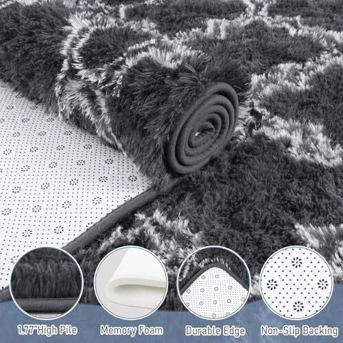 Indoor Outdoor Usage: Indoor Brand: Does Not Apply EAN: Does Not Apply Product Care Instructions: Vacuum, Hand Wash, Machine Wash (gentle cycle), Lay Flat to Dry Size: 5x8 Feet MPN: Does Not Apply Item Length: 1 Item Weight: 5.6 Pounds Style Name: Moroccan Item Height: 1 Item Dimensions L x W: 96.06"L x 60.24"W Construction Type: Machine Made Type: Does Not Apply Back Material Type: Moroccan Wood Shape: Rectangular Rug Form Type: Area Rug Weave Type: Flat Woven Room Type: Bedroom, Living Room, Guest Room, Home Office Pile Height: High Pile Pattern: Geometric Is Stain Resistant: Yes UPC: Does Not Apply Model Name: LOCHAS Luxury Shag Area Rug 5x8 Feet Geometric Plush Fluffy Rugs, Number of Pieces: 1 Additional Features: Fluffy, Shaggy, Fuzzy, Non Slip Material Type: Memory Foam,Polyester,Faux Fur gtin13: Does Not Apply Color: Dark Grey/White Theme: Geometric, Modern Is Electric: No Item Thickness: 1.77 Inches Water Resistance Level: Not Water Resistant Item Width: 1