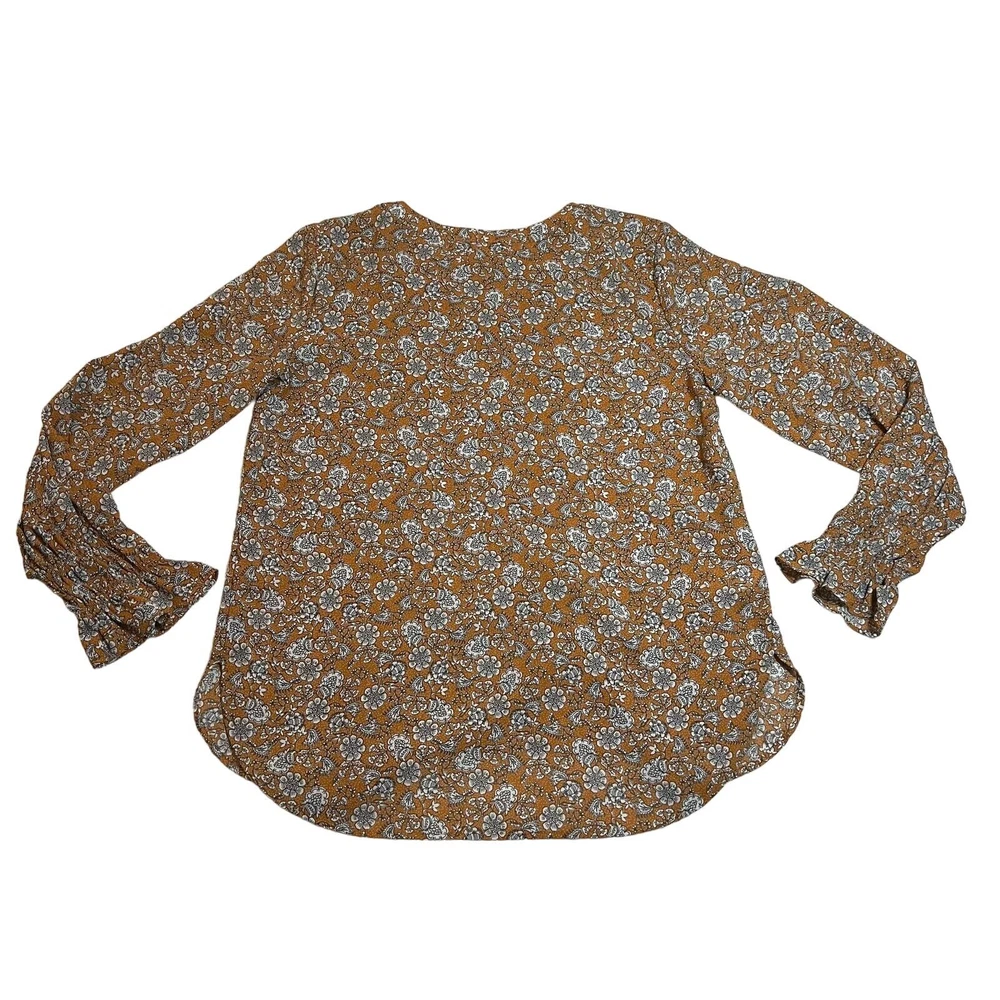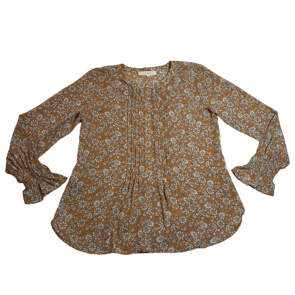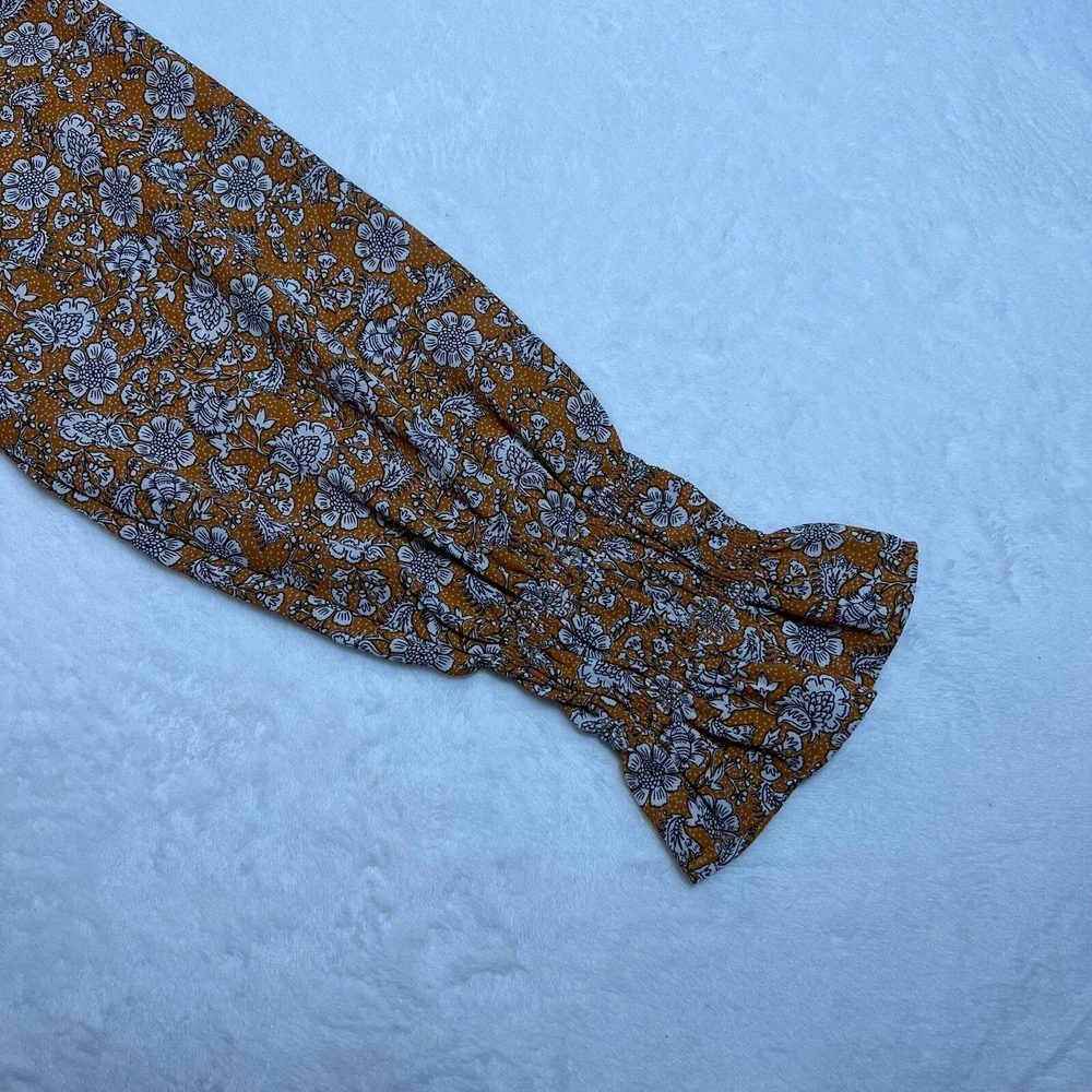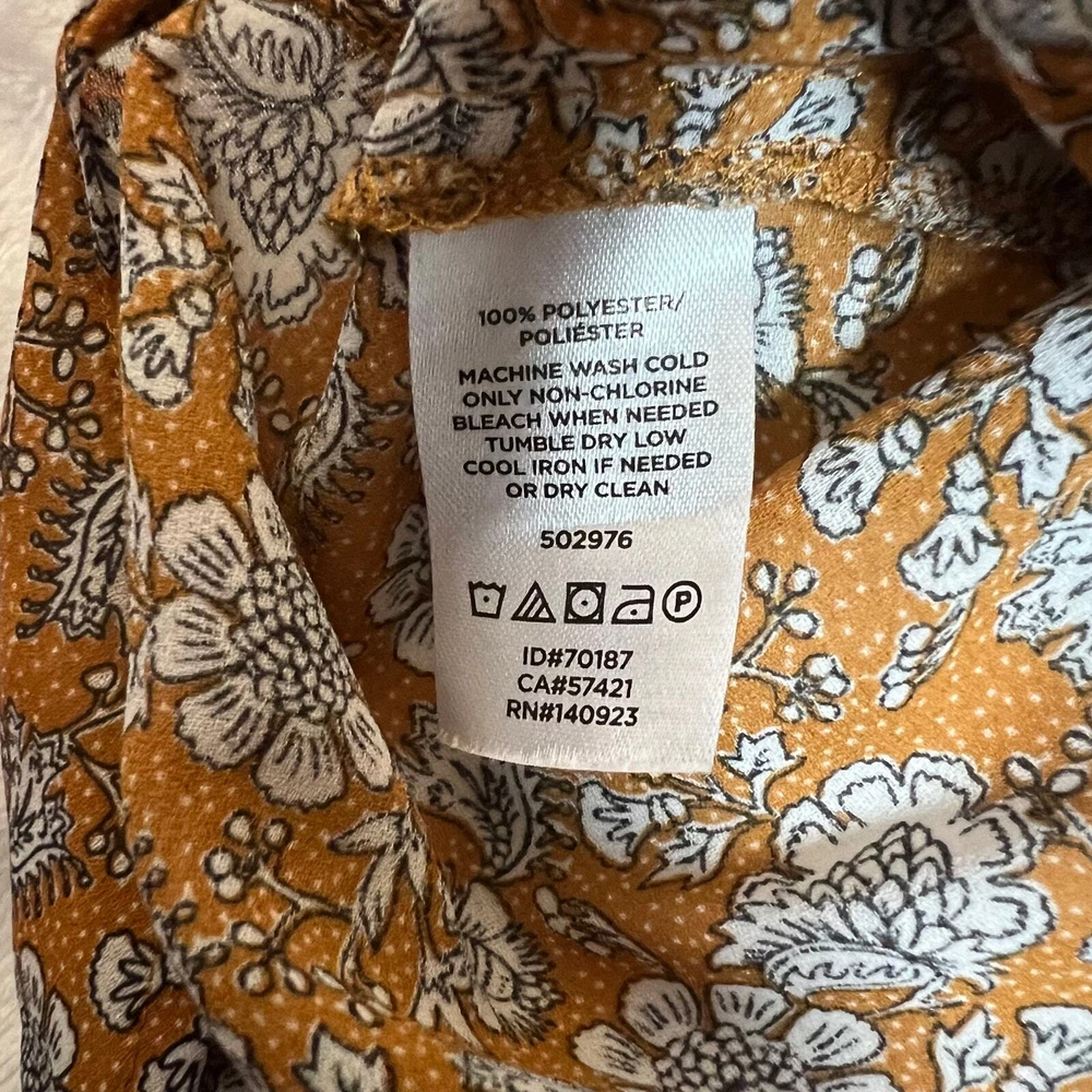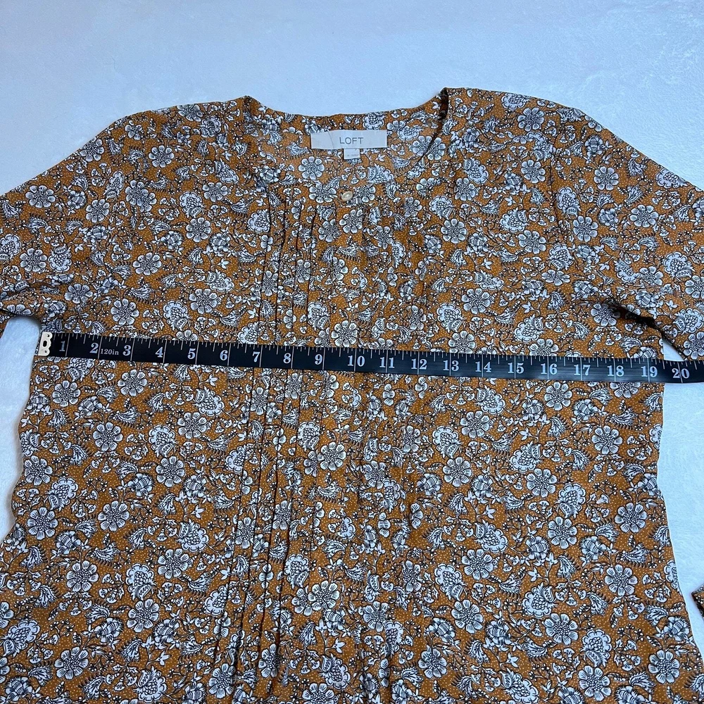 LOFT Crewneck Floral Print Pleated Front Blouse Size Small Lightweight Office CONDITION: Pre-Owned. Excellent Used Condition. FLAWS/ALTERATIONS: There is a tiny snag on the sleeve. Please see the last picture. COLOR: Orange/White/Black SIZE: Women’s Size Small DETAILS: Crewneck Long sleeve Elastic cuffs Floral print Pleated front 3/4 button down Lightweight MEASUREMENTS: Chest: 19.5" Full Length: 26" **All measurements are approximate and are taken flat** MATERIAL: 100% Polyester Bundle 2 OR MORE items to save more! Reasonable offers are welcomed! TAGS: Casual Comfy All Season Floral Contemporary Maximalist Career Office Professional Boho Bohemian Hipster