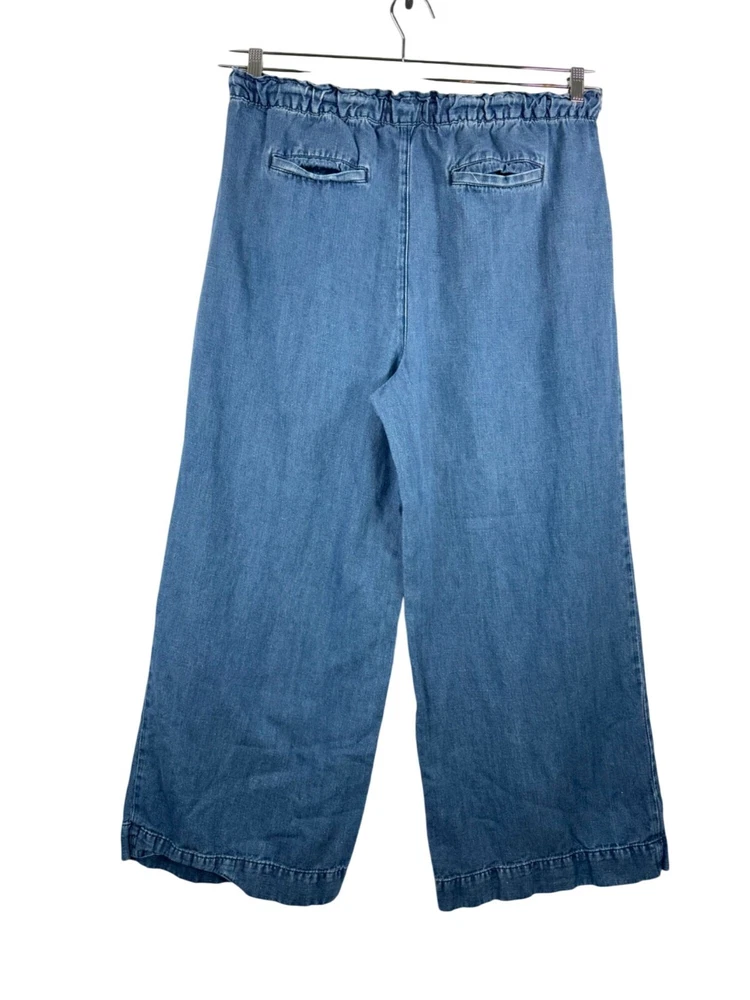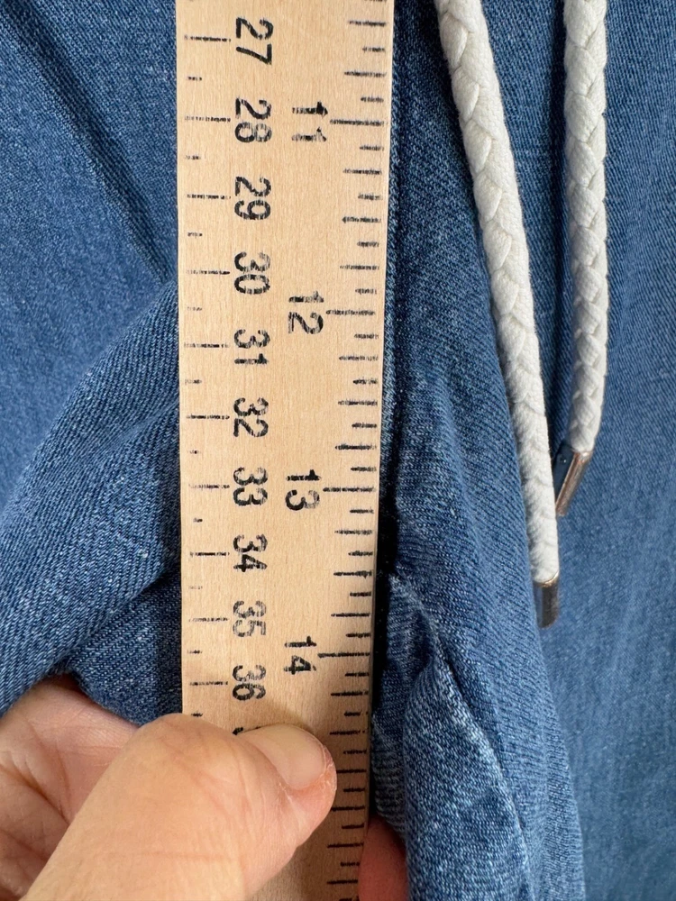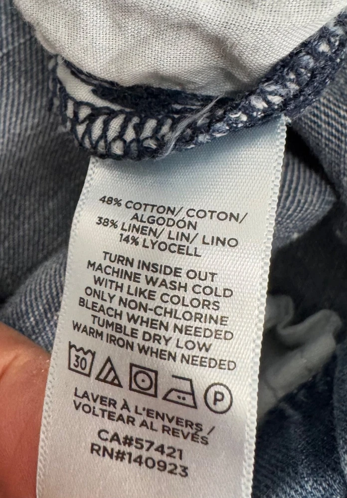 good preowned condition / missing size chart but waist measures 18" flat lay Pockets, elastic pull on waist with waist ties Linen-blend fabric for a breathable feel. Wide-leg silhouette for a relaxed and flowy fit. Pull-on waistband for easy wear and all-day comfort. Classic blue hue perfect for creating versatile, laid-back looks. Inspired by 90s coastal style – timeless and effortlessly chic. Flat lay: waist 18" Rise 13.5" Inseam 29" Leg Opening 13" 48% cotton 38% Linen 14% Lyocell wide leg, linen, coastal, beachy, relaxed, loose fit, comfy, flowy, boho, minimalist, old money, 90s, PLEASE check all flat lay measurements and listings carefully BEFORE PURCHASE!I put in a lot of work into hand measuring and researching each items as best as I can! Thank you so much for your consideration! Please note that: RETURN SHIP FEE IS PAID BY THE BUYER! If you are not too familiar with flat lay measurements, I recommend taking a measurement of your own clothes that you feel comfortable and compare with the measurement I provide. For returns: The items MUST BE IN SAME CONDITION AS SOLD for full refund! We all don't like returns and let's work together to minimize! Please note that RETURNS ARE NOT ACCEPTED FOR NEW WITH TAG OR NEW WITHOUT TAG ITEMS!