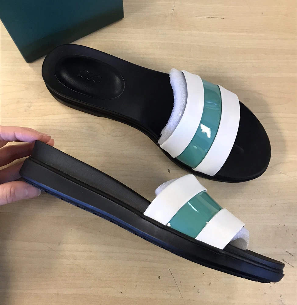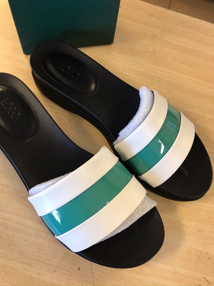 Today's listing is for these fun and easy Slip-On Footbed Sandals from the LOGO by Lori Goldstein collection. These are a great, versatile sandal for the warm spring and summer months that are easy and stylish! These come in the color "White Birch" in women's size 9.5 medium. Item is new and un-used in the original box, however have some VERY minor spots in the white leather. There is also a little glue residue around the edge of the "LOGO" name in the footbed. For more details, please see photos. The item shown in the photos is the SAME ACTUAL item that you will receive. There may also be some wear to box. The regular retail of these is $120 + TAX! Open toe, single upper strap with contrast design Padded insole, textured outsole Approximately 1-1/2"H sole Leather/man-made; leather footbed; man-made balance ALL SALES FINAL - NO RETURNS/EXCHANGES. WE ONLY SHIP TO THE 48 CONTIGUOUS STATES OF THE UNITED STATES, NO INTERNATIONAL ORDERS. Once winning/buying item, please pay within 3 days. We ship quickly! :) If you have any questions or concerns, please feel free to send us a message. Thank you so much for shopping with OeBristol. For more great items, be sure to visit our eBay store.