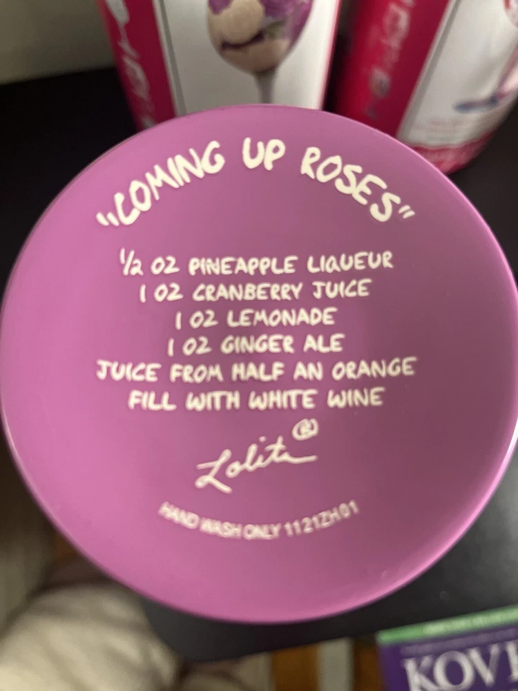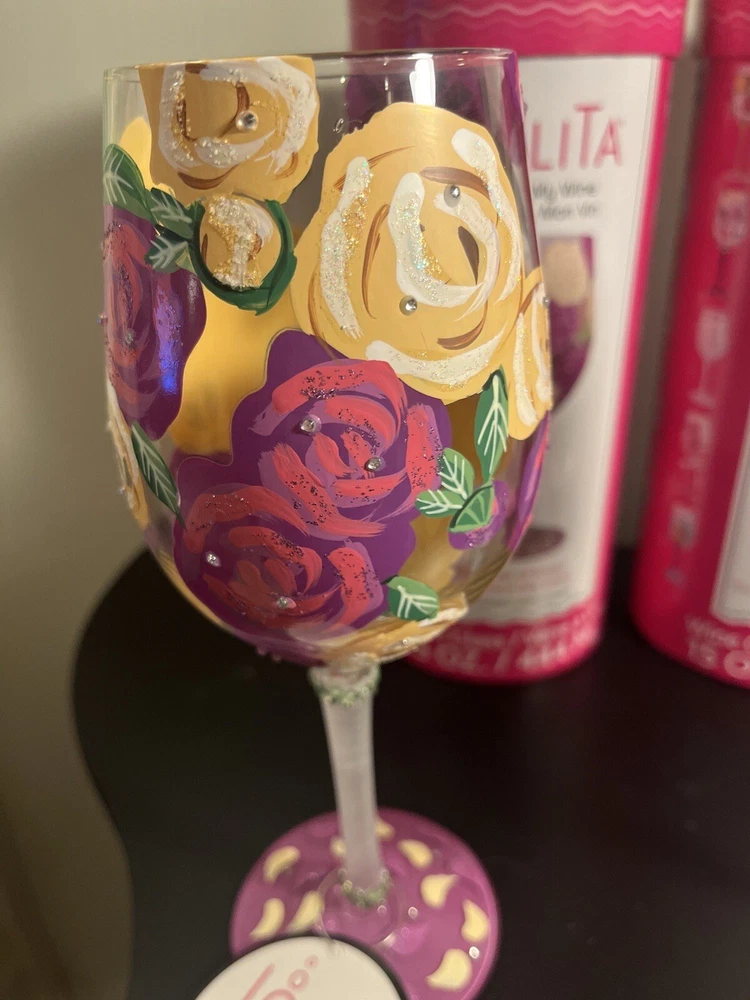 This gorgeous hand-painted Lolita wine glass is a must-have for any wine lover! The vibrant purple and yellow "Coming Up Roses" design adds a pop of elegance to every sip. I love the thoughtful touch of a recipe on the stem—such a fun surprise. The glass feels premium, and the bright pink cylinder box makes it perfect for gifting. Shipped fast, it arrived in time for Mother’s Day. Whether for a special occasion or just to treat yourself, this glass turns ordinary wine nights into something magical. Highly recommend!