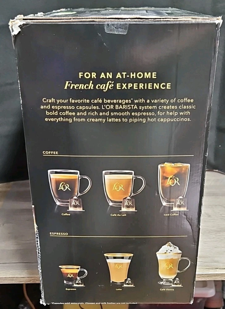 L'OR Barista System | Coffee & Espresso Maker This unit has been thoroughly tested and is fully functional. It has seen minimal use and is prepared for its next deployment. Condition & Specifics: Performance: Comprehensively tested; operates flawlessly. Exterior: Previously owned with minor cosmetic abrasions. No significant damage is present. Packaging: The original retail packaging is included, exhibiting some visible wear and tear. Please Note: The original capsule tasting box is not included. Imagery: Kindly refer to all provided images for an accurate representation of the unit's and packaging's condition. Key Features & Specifications: Dual-Capsule Compatibility: Capable of brewing both high-pressure espresso and standard drip coffee utilizing L'OR Barista and Nespresso* Original capsules. Automatic Capsule Recognition: Intelligently identifies capsule dimensions to dispense the optimal volume of water and pressure for each serving. 19-Bar High Pressure: Delivers professional-grade crema and robust flavor extraction, consistent with high-end espresso machines. Versatile Brew Sizes: Offers a selection of 6 distinct beverage volumes, ranging from a 1.3 oz espresso to a full 12 oz coffee. Rapid Heating: Attains brewing temperature swiftly, ensuring prompt enjoyment of your beverage. Generous Water Reservoir: Equipped with a removable tank for convenient refilling and maintenance. Ships within 1 business day.
