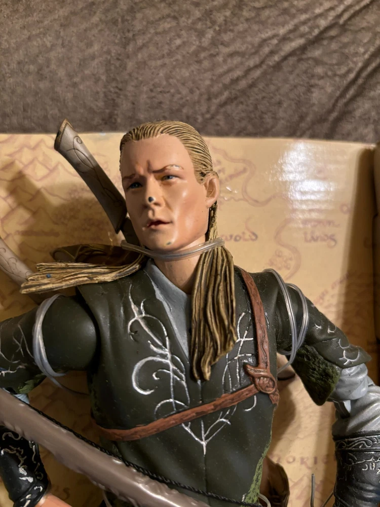HERES A GREAT ACTION FIGURE FROM TOY BIZ !! ITS LEGOLAS FROM LORD OF THE RINGS RETURN OF THE KING !! AN 11 INCH TALL POSEABLE FIGURE !! PRETTY COOL!! THERE IS A MARK ON HIS NOSE LOOKS LIKE PAINT CHIPPED !! CHECK THE PICTURES WHAT YOU SEE IS WHAT YOULL GET !! .BUYER PAYS 13.50 FOR USPS SHIPPING IN THE USA ONLY!!TRANSACTION MUST BE COMPLETE AT AUCTION END.I ACCEPT PAYMENTS THROUGH PAYPAL ONLY!! THANKS FOR LOOKING!! I DO COMBINE SHIPPING SO PLEASE CHECK MY OTHER ITEMS!! IF YOU DONT LIKE MY PRICES MAKE ME AN OFFER!! THE WORST I CAN DO IS SAY NO