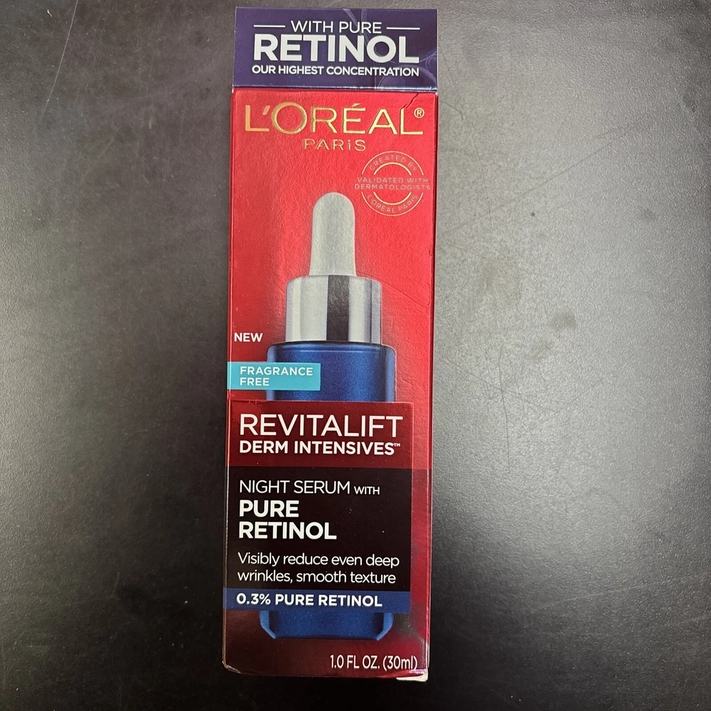 L'OREAL Paris Revitalift Derm Intensives Night Serum 0.3% Pure Retinol (1 FL OZ).