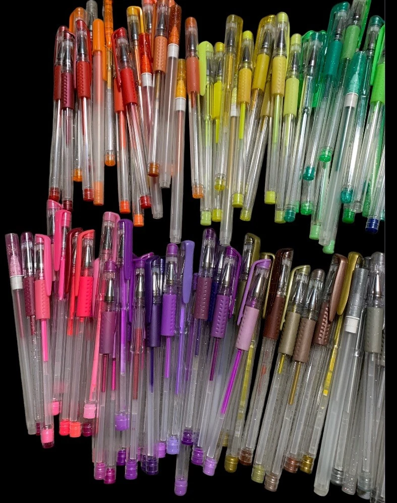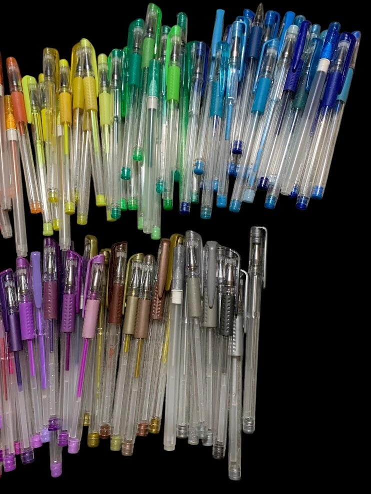 The product is a preloved lot of over 100 multicolored gel pens, including a mix of regular gel pens, neon, and glitter gel pens. These pens are suitable for various crafting and art projects, such as coloring, journaling, and drawing. Various brands known for producing high-quality art supplies. This diverse set of gel pens offers a range of colors and finishes, making it ideal for those who enjoy adding vibrant and glittery elements to their artwork. **PLEASE NOTE*** I'm not a collector or expert so please see all photos for condition and let me know if you have any questions or need any more photographs. Due to the reason of light and the display, you can see the picture may have a slight color difference, this is inevitable, please understand. Please review images to make your judgment on cosmetic condition which I believe is a matter of personal opinion. You will get what you see. The photos will overrule the listing title or descriptions if there is any discrepancy. Feel free to come see what more I have to explore in my store! New Items listed DAILY! Thank you for viewing! ********************************************