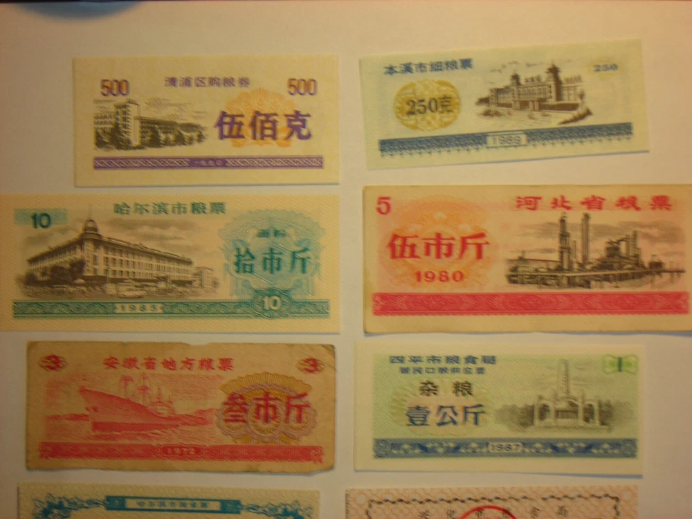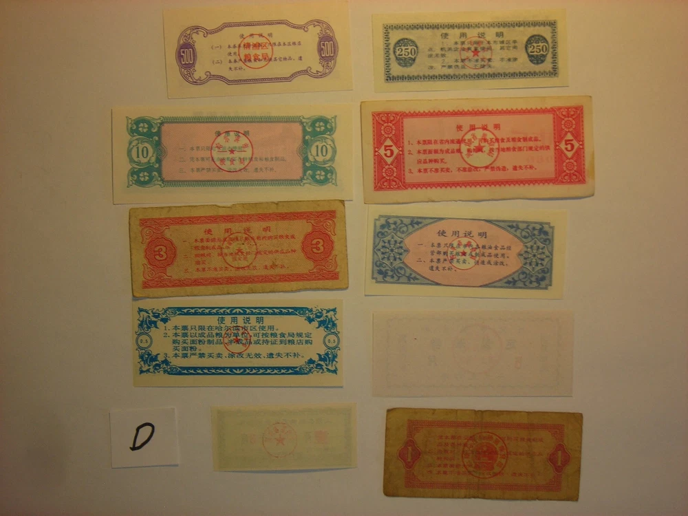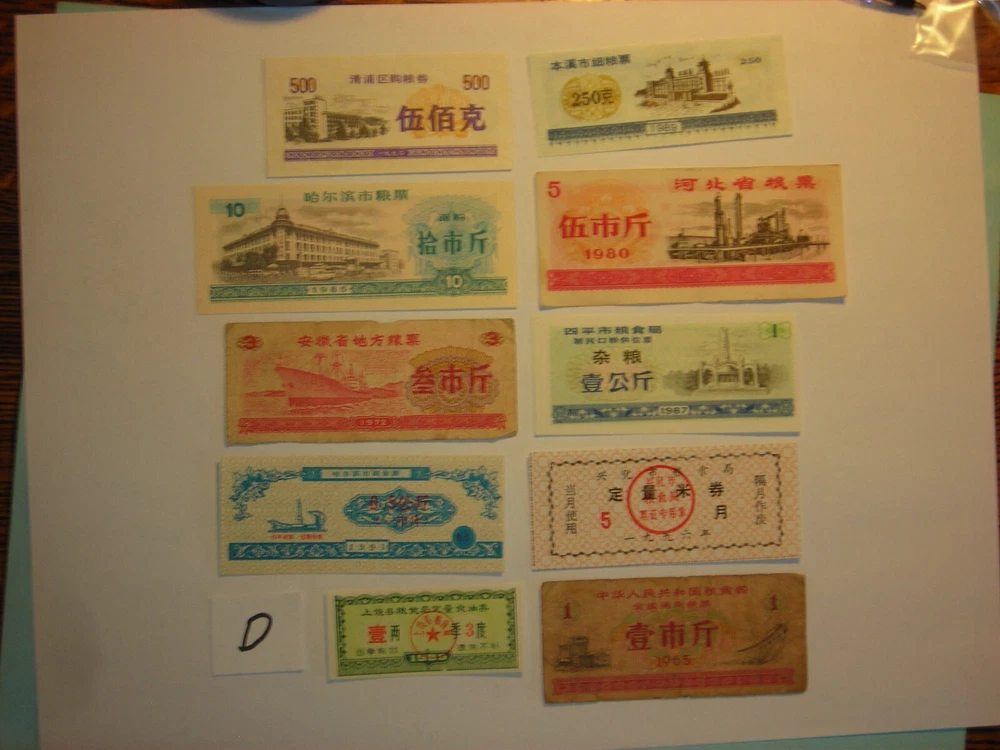LOT FOREIGN PAPER MONEY CHINA FOOD RATION COUPON 500,250,3,5,10 BILLS 10 PC LOT