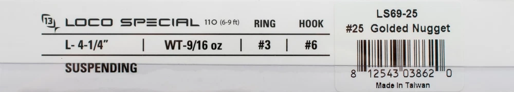 (LOT OF 3) 13 FISHING LOCO SPECIAL 110 9/16OZ LS69-25 GOLDED NUGGET H7309 (LOT OF 3) 13 FISHING LOCO SPECIAL 110 9/16OZ LS69-25 GOLDED NUGGET H7309 Slender suspense. The Loco Special creates the chaos of prey in peril. Tapping into the inner predator, the Loco Special will dart and pause in a manner most enticing to the most finicky of fish and literally forcing them to strike. Weighted for purposefully long casts, it will stay in the target rich environment for longer. If you need a bite, you know where to reach. Features Ultra-High Definition Paint Finishes High Definition Holographic Eyes Weight Transfer System Improves Casting Distance Mustad KVD Elite Triple Grip Treble Specs Length: 4-1/4" Weight: 9/16oz Hook: # 6 Type: Suspending Depth: 6-9ft PAYMENT TERMS VISA, MASTERCARD, AMEX, OR DISCOVER PAYPAL APPLE PAY GOOGLE PAY PAYMENTS MUST BE MADE IN FULL WITHIN 7 DAYS SHIPPING TERMS ALL PAID ORDERS SHIP WITHIN 1 BUSINESS DAY INSURANCE IS INCLUDED IN SHIPPING PRICE COMBINED ORDER POLICY ORDERS ARE COMBINED NIGHTLY AFTER END OF ALL AUCTIONS. DO NOT PAY FOR INDIVIDUAL ITEMS ENDING ON THE SAME DATE IF YOU WANT THE ORDER COMBINED. ALLOW US TIME TO SEND YOU A COMBINED INVOICE. ORDERS THAT ARE PAID FOR ON DIFFERENT DATES ARE NOT OUR RESPONSIBILITY TO COMBINE. ITEMS MUST BE PAID IN FULL WITHIN 7 DAYS FROM THE END OF 1ST AUCTION. COMBINED ORDER PRICING BAITS - EACH ADDITIONAL AUCTION $1.00 REELS - EACH ADDITIONAL AUCTION $1.00 RODS* - EACH ADDITIONAL AUCTION $1.00 *ALL RODS WILL ONLY COMBINE WITH RODS OPERATING HOURS BUSINESS HOURS ARE MONDAY - THURSDAY 9AM-5PM CENTRAL TIME & FRIDAY 9AM-3PM CENTRAL TIME, EXCLUDING HOLIDAYS EBAY MESSAGES ARE ANSWERED DURING NORMAL BUSINESS HOURS DUE TO THE OVERWHELMING AMOUNT OF ONLINE ORDERS WE ARE EXPERIENCING, LONGER THAN NORMAL RESPONSE TIME TO EMAILS MAY OCCUR. PLEASE BE PATIENT.