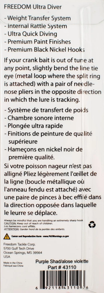 (LOT OF 3) FREEDOM TACKLE ULTRA DIVER SHAD 65 3/8OZ PURPLE SHAD #43110 CO6359 (LOT OF 3) FREEDOM TACKLE ULTRA DIVER SHAD 65 3/8OZ PURPLE SHAD #43110 CO6359 The FT Ultra Diver Minnow is just the bait you need to up your fishing game. The design team at American Baitworks developed the FT Ultra Diver Minnow with a forward-weighted design which ensures the minnow is primed and ready to dive deep as soon as it hits the water. The cloverleaf bill design also creates a radical deflection action that is sure to attract fish. We placed a lot of emphasis on performance and the realistic 3-piece, sonic-welded body design and integrated one-piece bill design add to the appeal of this bait. Plus, the premium VMC black nickel hooks provide even more durability and strength. You'll be cranking in big ones in no time with the Ultra Diver Minnow. Specs/Features Length: 2 1/2" Weight: 3/8oz Weight transfer system Internal rattle system Ultra quick diving Premium paint finishes Premium black nickel hooks PAYMENT TERMS VISA, MASTERCARD, AMEX, OR DISCOVER PAYPAL APPLE PAY GOOGLE PAY PAYMENTS MUST BE MADE IN FULL WITHIN 7 DAYS SHIPPING TERMS ALL PAID ORDERS SHIP WITHIN 1 BUSINESS DAY INSURANCE IS INCLUDED IN SHIPPING PRICE COMBINED ORDER POLICY ORDERS ARE COMBINED NIGHTLY AFTER END OF ALL AUCTIONS. DO NOT PAY FOR INDIVIDUAL ITEMS ENDING ON THE SAME DATE IF YOU WANT THE ORDER COMBINED. ALLOW US TIME TO SEND YOU A COMBINED INVOICE. ORDERS THAT ARE PAID FOR ON DIFFERENT DATES ARE NOT OUR RESPONSIBILITY TO COMBINE. ITEMS MUST BE PAID IN FULL WITHIN 7 DAYS FROM THE END OF 1ST AUCTION. COMBINED ORDER PRICING BAITS - EACH ADDITIONAL AUCTION $1.00 REELS - EACH ADDITIONAL AUCTION $1.00 RODS* - EACH ADDITIONAL AUCTION $1.00 *ALL RODS WILL ONLY COMBINE WITH RODS OPERATING HOURS BUSINESS HOURS ARE MONDAY - THURSDAY 9AM-5PM CENTRAL TIME & FRIDAY 9AM-3PM CENTRAL TIME, EXCLUDING HOLIDAYS EBAY MESSAGES ARE ANSWERED DURING NORMAL BUSINESS HOURS DUE TO THE OVERWHELMING AMOUNT OF ONLINE ORDERS WE ARE EXPERIENCING, LONGER THAN NORMAL RESPONSE TIME TO EMAILS MAY OCCUR. PLEASE BE PATIENT.