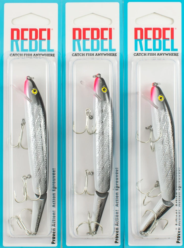 (LOT OF 3) REBEL JOINTED MINNOW 7/16OZ J2001S SILVER BLACK D7304