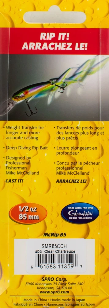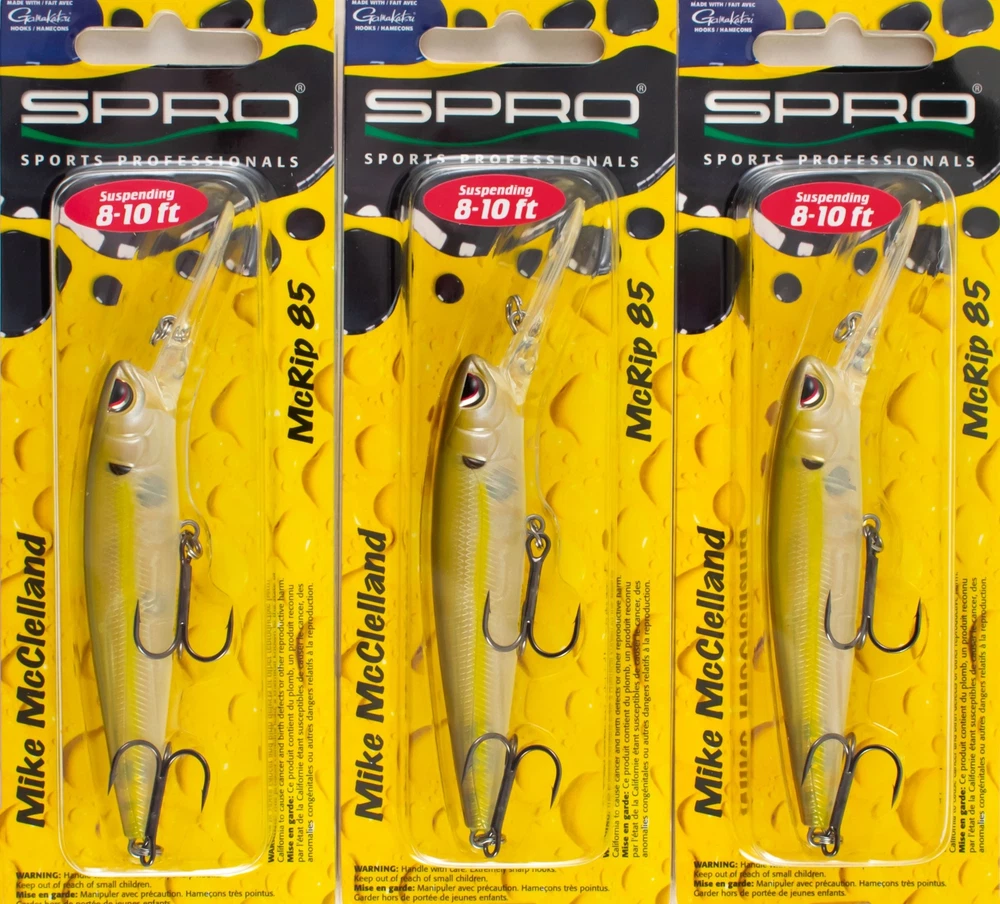 (LOT OF 3) SPRO MCRIP 85 JERKBAIT 1/2OZ SMR85CCH #03 CLEAR CHARTREUSE L4350 (LOT OF 3) SPRO MCRIP 85 JERKBAIT 1/2OZ SMR85CCH #03 CLEAR CHARTREUSE L4350 The McRip 85 was designed by BASS Elite Series Angler Mike McClelland to be a deep diving suspending jerkbait. The McRip 85 has an aggressive slashing action, features sticky sharp Gamakatsu treble hooks, and comes in an array of fish-catching colors. Features: <> The SPRO McRip is a deep diving jerkbait that you can rip through the water on early season and late season fish--when they're deep in the channel. Deep diving, 9 to 11 foot diving jerkbait, fish it like a stick with a sweeping action followed by short and long pauses, and rip or jerk to mix things up, too. Versatility at depth. The McRip is like Fast Food for the deep bass. Once you get it down there and suspending, the action drives the fish crazy and will pound this lure. Designed by Tournament Pro and SPRO team member Mike McClelland. Specs: <> Weight: 1/2oz. Size: 85mm Depth: 8"-10" PAYMENT TERMS VISA, MASTERCARD, AMEX, OR DISCOVER PAYPAL APPLE PAY GOOGLE PAY PAYMENTS MUST BE MADE IN FULL WITHIN 7 DAYS SHIPPING TERMS ALL PAID ORDERS SHIP WITHIN 1 BUSINESS DAY INSURANCE IS INCLUDED IN SHIPPING PRICE COMBINED ORDER POLICY ORDERS ARE COMBINED NIGHTLY AFTER END OF ALL AUCTIONS. DO NOT PAY FOR INDIVIDUAL ITEMS ENDING ON THE SAME DATE IF YOU WANT THE ORDER COMBINED. ALLOW US TIME TO SEND YOU A COMBINED INVOICE. ORDERS THAT ARE PAID FOR ON DIFFERENT DATES ARE NOT OUR RESPONSIBILITY TO COMBINE. ITEMS MUST BE PAID IN FULL WITHIN 7 DAYS FROM THE END OF 1ST AUCTION. COMBINED ORDER PRICING BAITS - EACH ADDITIONAL AUCTION $1.00 REELS - EACH ADDITIONAL AUCTION $1.00 RODS* - EACH ADDITIONAL AUCTION $1.00 *ALL RODS WILL ONLY COMBINE WITH RODS OPERATING HOURS BUSINESS HOURS ARE MONDAY - THURSDAY 9AM-5PM CENTRAL TIME & FRIDAY 9AM-3PM CENTRAL TIME, EXCLUDING HOLIDAYS EBAY MESSAGES ARE ANSWERED DURING NORMAL BUSINESS HOURS DUE TO THE OVERWHELMING AMOUNT OF ONLINE ORDERS WE ARE EXPERIENCING, LONGER THAN NORMAL RESPONSE TIME TO EMAILS MAY OCCUR. PLEASE BE PATIENT.