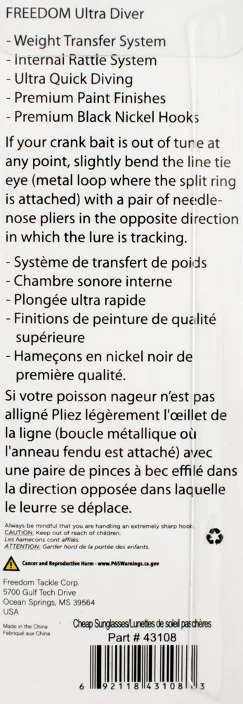 Item Weight: 3/8oz gtin13: 692118431083 Bait Type: Crankbait UPC: 692118431083 Brand: Freedom