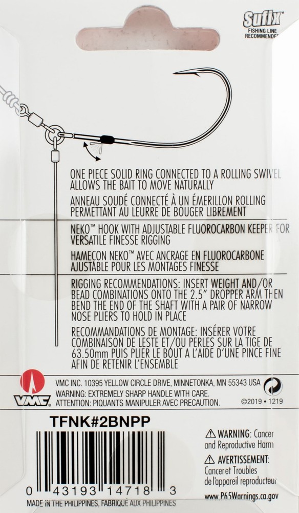 (LOT OF 6) VMC TOKYO RIG FINESSE NEKO BLACK NICKEL HOOK #2 TFNK#2BNPP H1332 (LOT OF 6) VMC TOKYO RIG FINESSE NEKO BLACK NICKEL HOOK #2 TFNK#2BNPP H1332 One piece solid ring connected to a premium rolling swivel allows the bait to move freely above the dropper arm with a natural flowing and undulating action. Stainless steel 2.5" dropper arm for customized rigging. Slide on your favorite weight(s) and/or bead combinations onto the shaft then bend the end of the shaft with a pair of narrow nose pliers to hold in place. Features Offset Point Long Shank Wide Gap Forged Adjustable Fluorocarbon Keeper One Piece Solid Ring Connected to Rolling Swivel 2.5” Stainless Steel Dropper Arm Specs Hook Size: #2 PAYMENT TERMS VISA, MASTERCARD, AMEX, OR DISCOVER PAYPAL APPLE PAY GOOGLE PAY PAYMENTS MUST BE MADE IN FULL WITHIN 7 DAYS SHIPPING TERMS ALL PAID ORDERS SHIP WITHIN 1 BUSINESS DAY INSURANCE IS INCLUDED IN SHIPPING PRICE COMBINED ORDER POLICY ORDERS ARE COMBINED NIGHTLY AFTER END OF ALL AUCTIONS. DO NOT PAY FOR INDIVIDUAL ITEMS ENDING ON THE SAME DATE IF YOU WANT THE ORDER COMBINED. ALLOW US TIME TO SEND YOU A COMBINED INVOICE. ORDERS THAT ARE PAID FOR ON DIFFERENT DATES ARE NOT OUR RESPONSIBILITY TO COMBINE. ITEMS MUST BE PAID IN FULL WITHIN 7 DAYS FROM THE END OF 1ST AUCTION. COMBINED ORDER PRICING BAITS - EACH ADDITIONAL AUCTION $1.00 REELS - EACH ADDITIONAL AUCTION $1.00 RODS* - EACH ADDITIONAL AUCTION $1.00 *ALL RODS WILL ONLY COMBINE WITH RODS OPERATING HOURS BUSINESS HOURS ARE MONDAY - THURSDAY 9AM-5PM CENTRAL TIME & FRIDAY 9AM-3PM CENTRAL TIME, EXCLUDING HOLIDAYS EBAY MESSAGES ARE ANSWERED DURING NORMAL BUSINESS HOURS DUE TO THE OVERWHELMING AMOUNT OF ONLINE ORDERS WE ARE EXPERIENCING, LONGER THAN NORMAL RESPONSE TIME TO EMAILS MAY OCCUR. PLEASE BE PATIENT.