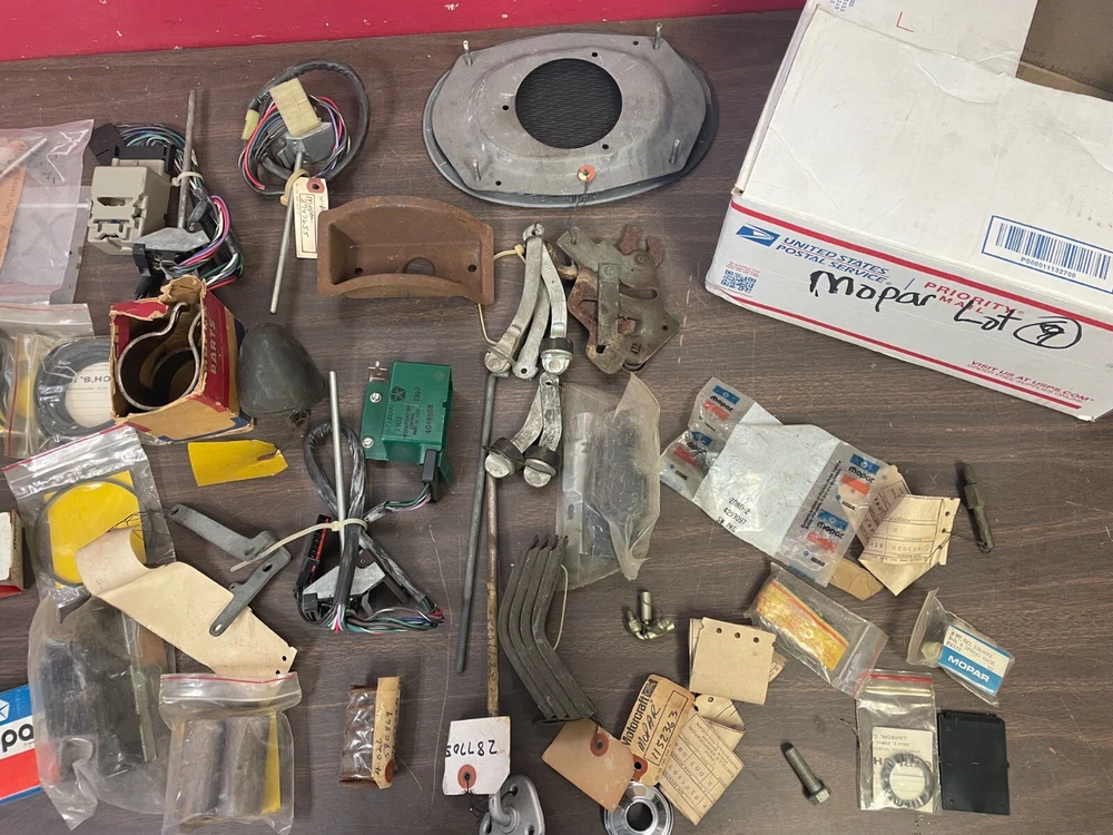 LOT OF VINTAGE NOS MOPAR 1940s 1950s 1960s 1970s CAR PARTS LOT 9 YOU GET ALL PICTURED SOME PARTS MAY HAVE SURFACE RUST, DIRTY, ETC BOXES ARE OLD AND WORN SOLD AS IS!! SEE OUR OTHER ITEMS MAKE SURE THIS IS CORRECT FOR YOUR RIDE BEFORE YOU BID EMAIL WITH QUESTIONS......SOLD AS IS.....NO RESERVE