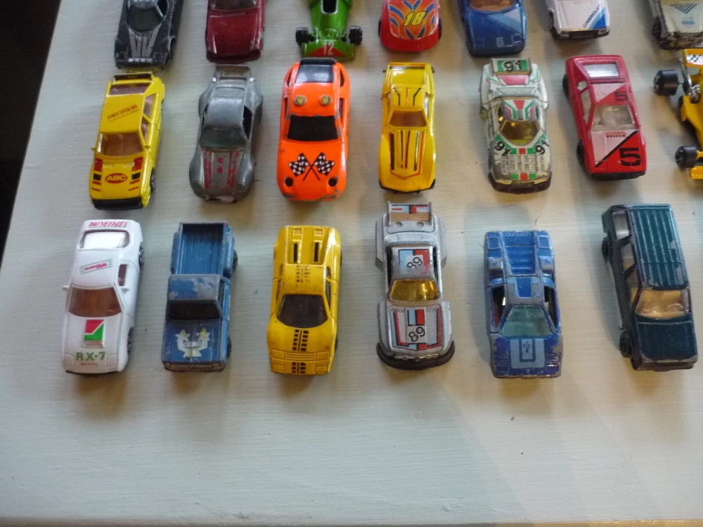 LOT OF 40 CARS VINTAGE FROM RACE CARS, TRUCKS, VANS AND A FIRE TRUCK. SCALE 1:8. SOME ARE ALL METAL AND SOME HAVE PLASTIC UNDERNEATH. #9 6 11 10 7 Please always reference photos for Condition Details and wear. LOOK AT ALL THE PICTURES. IF YOU HAVE ANY QUESTIONS PLEASE FEEL FREE TO ASK. WE SHIP USPS SHIPPING ONLY. NO OUT OF COUNTRY SHIPPING. PLEASE SEE ALL OF OUR OTHER ITEMS
