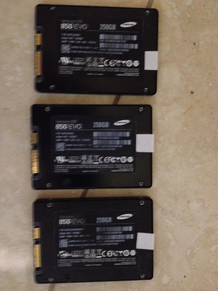 LOT of 3... Samsung 850 EVO 250GB...MZ-75E250... SSD 2.5" SATA...TESTED... ...TESTED ... FORMAT THE DRIVE... Installed win 10 on them to see if they work with windows then removed it... Accept PAYPAL... 30 DAY Guaranteed... Warranty.... SHIPPING PRICES: Continental U.S...... $4.00 SHIPPING .......NO INTERNATIONAL SHIPPING