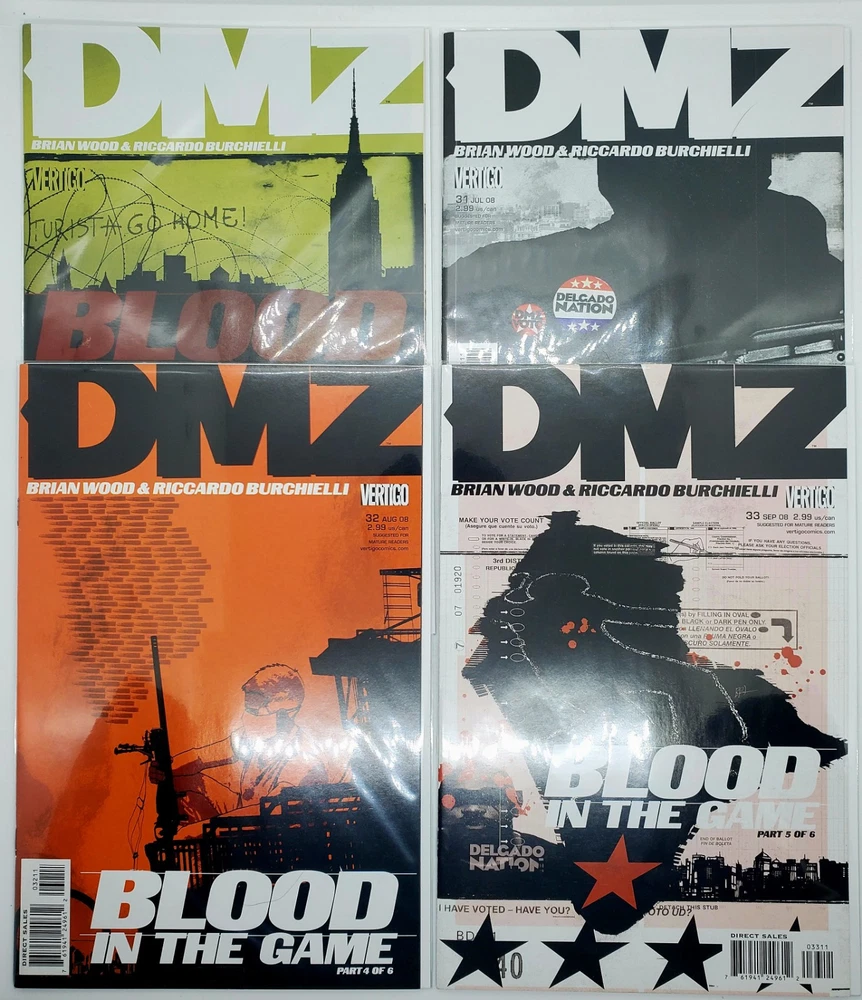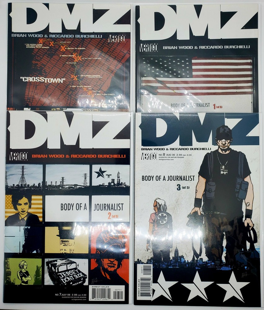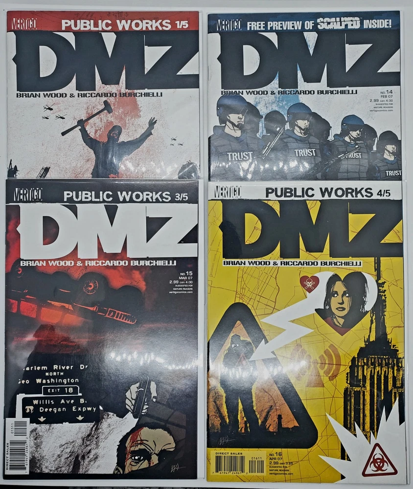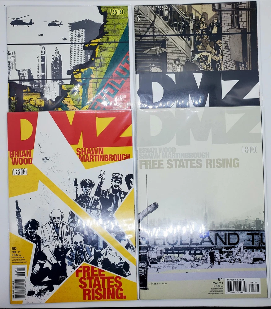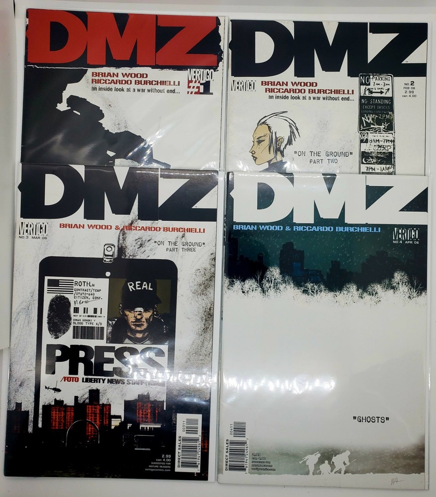 LOT of 56 DMZ Comic Books #1-61 (Vertigo, 2006) 1st Print! Mint Condition! π₯π *Issues not included are #23, 47, 50, 52, 56 #1 through #61 for a total of 56 Issues included are: #1, 2, 3, 4, 5, 6, 7, 8, 9, 10, 11, 12, 13, 14, 15, 16, 17, 18, 19, 20, 21, 22, 24, 25, 26, 27, 28, 29, 30, 31, 32, 33, 34, 35, 36, 37, 38, 39, 40, 41, 42, 43, 44, 45, 46, 48, 49, 51, 53, 54, 55, 57, 58, 59, 60, 61 *All issues are in Excllent Condition! π *All issues are inside an acid free clear plastic protector sleeve alongside a white comic book cardboard sleeve. This lot includes 56 comic books of the "DMZ" series, published by Vertigo Comics in 2006. The set consists of issues #1-61, featuring cover variant A by artist Brian Wood and written by Brian Wood and Riccardo Burchielli. Set in the Vertigo Universe, the comics fall under the Action and Science Fiction genres and are intended for mature audiences, as per the Viewer Discretion Advised warning. The collection offers a comprehensive look into the storyline of DMZ, a popular series in US comics.