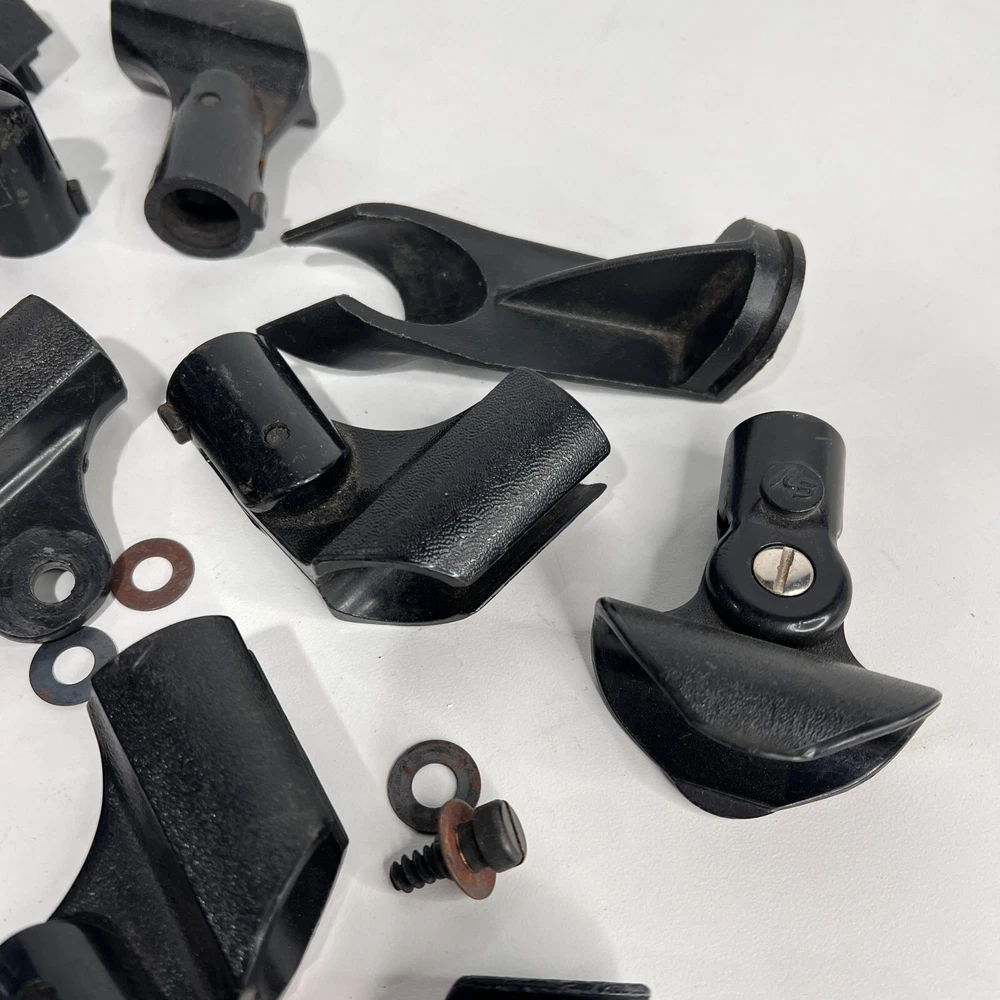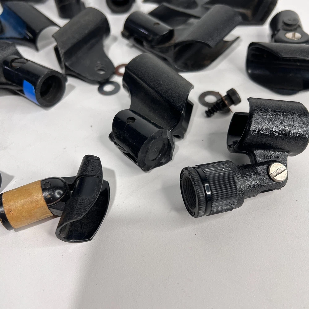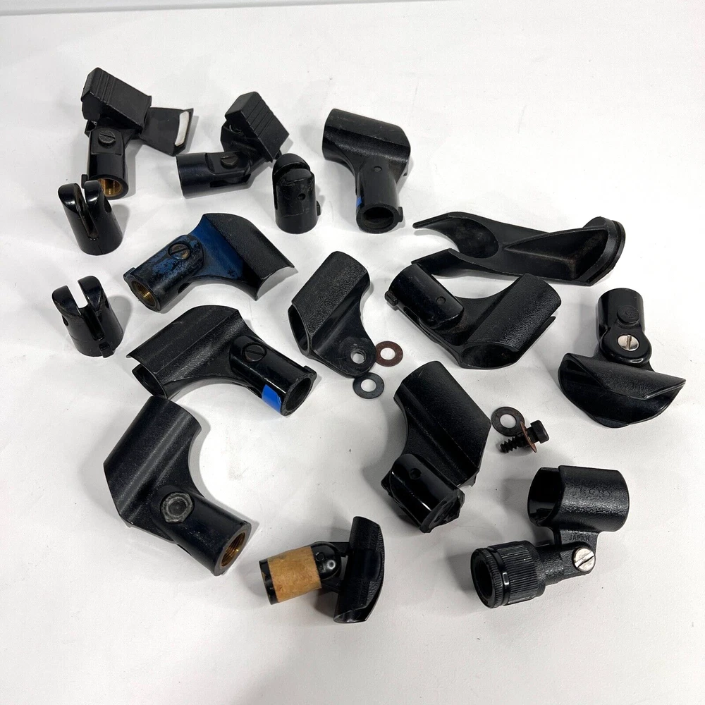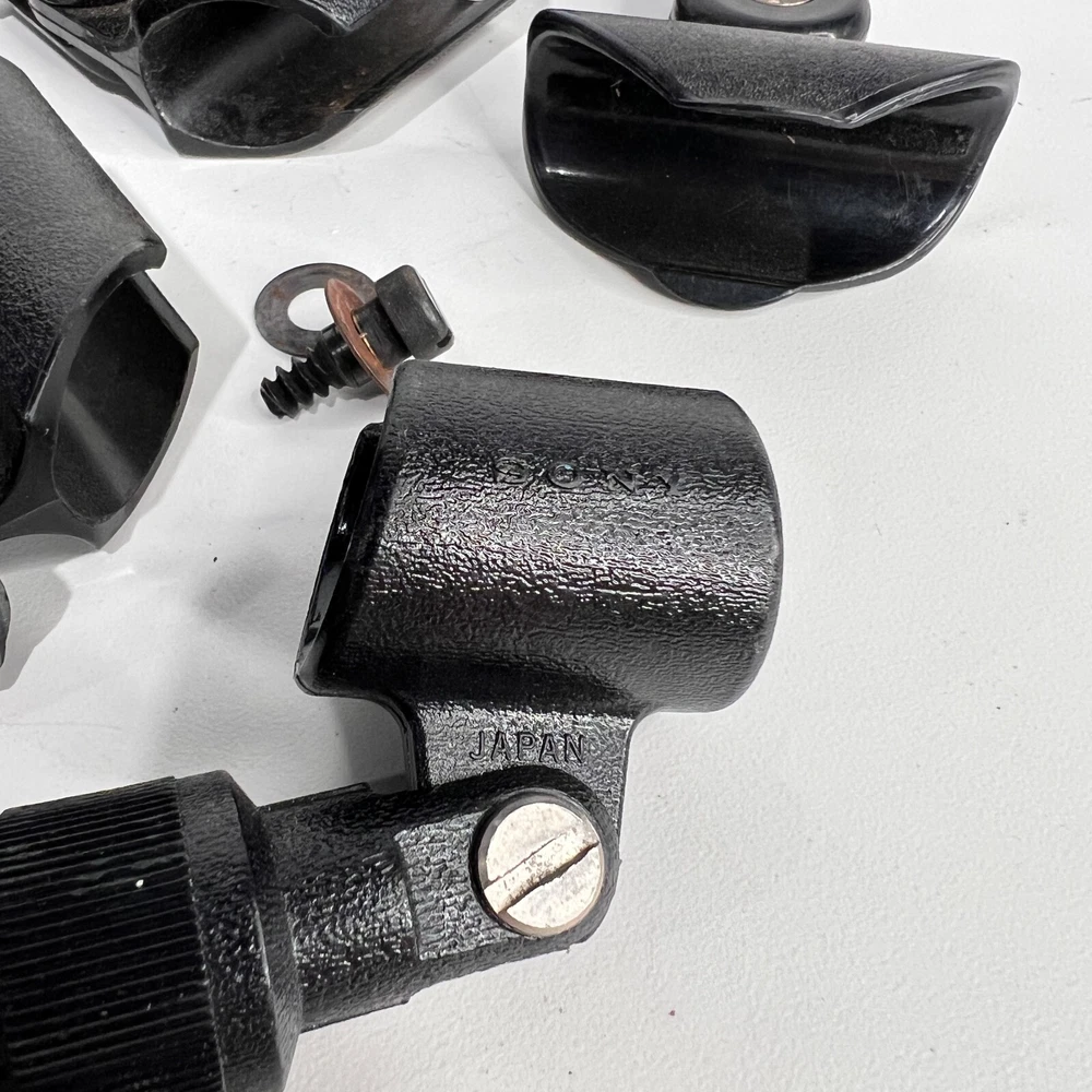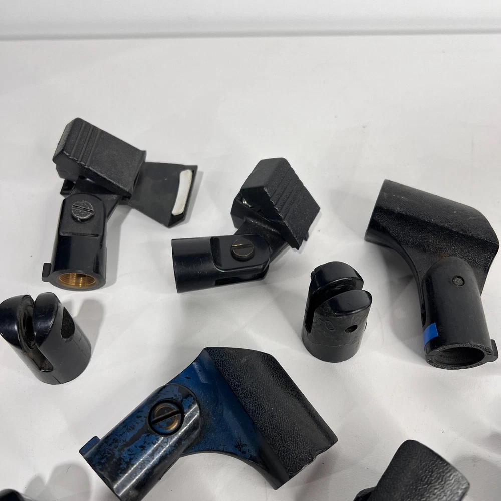 Please check photos for everything thats included! Quite a few have shure written on them, a couple sony, and some with no writing - some are just for the parts/base