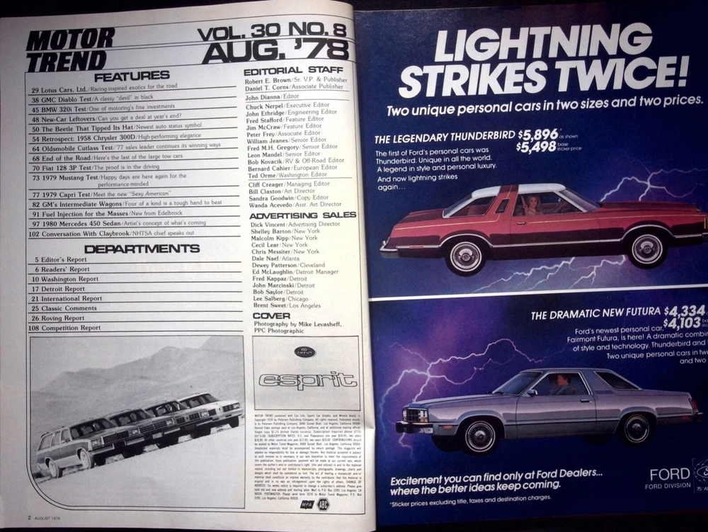 Take advantage of the magazine?s flat-rate shipping in the same package! Adding two or more to your shopping cart and checking out the flat rate will apply. Feel free to reach out if there are any problems, and I can always send you an invoice with the flat rate. LOTUS ESPRIT S2 - MOTOR TREND MAGAZINE, VOL. 30 NO. 8 AUG 1978 The magazine has minor wear; please look at the magazine photos. See the seller’s listings for full details and a description of any imperfections. We will be listing new magazines regularly; please follow our store. This magazine will be shipped in a vinyl bag to achieve the cheapest first-class rate due to the advertisement in the magazine; we can't ship media mail. MAKE AN OFFER by clicking the "MAKE OFFER" Button WE DO OFFER COMBINED SHIPPING ON ALL ORDERS. The magazine has minor visible wear . It may have very minimal identifying marks on the inside cover or outside. There are no missing pages, some creases, tears, or underlining/highlighting of text or writing in the margins. No matter what happens, If you need additional information on this product, feel free to contact us, and we will provide it ASAP.