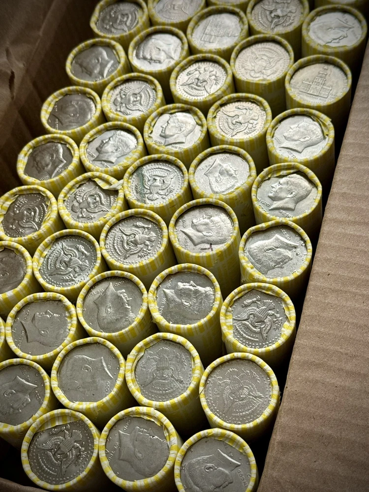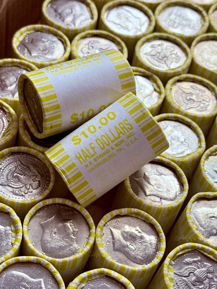 LOWEST PRICE UNSEARCHED Kennedy Half Dollar Roll - Circulated Coins (20 Coins / $10 Face Value) Get your hands on our LOWEST PRICE unsearched Kennedy half dollar rolls directly from the bank! Each roll contains 20 circulated coins, totaling $10 face value. This is a fantastic opportunity for collectors and coin enthusiasts alike. **Key Features:** - **Condition:** Circulated coins - **Quantity:** 1 roll (20 coins / $10 face value) - **Source:** Straight from the bank **Important Notes:** - Please take a moment to look at the photos provided. Some rolls may have a loose paper edge, which is typical as they come directly from the bank. - These rolls are machine-rolled at the bank, resulting in a tight packaging that cannot be physically manipulated by hand. Don't miss out on this chance to add to your collection or to explore the potential hidden treasures within these rolls! Buy now and enjoy the thrill of unsearched coins! Feel free to reach out with any questions. Happy bidding! Thanks, and Happy Hunting!