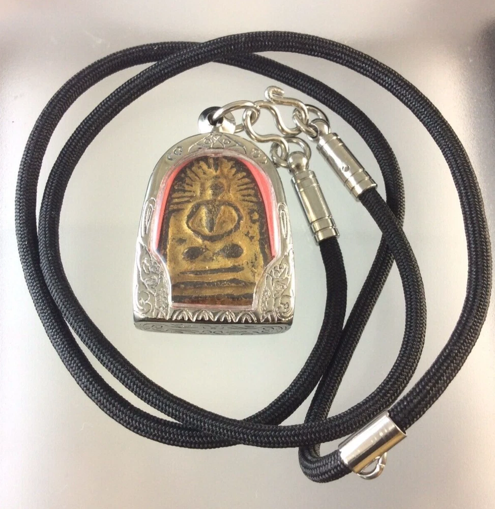 Size of Amulet: Approx. 2 x 3 cm Blessings: Protection, Prosperity, Good Luck, Health Age: Antique / Vintage Item: LP Boon Amulet Origin: Thailand Type: Thai Buddha Amulet Suitable For: Collectors, Devotees, Spiritual Practitioners Primary Material: Sacred Powder / Metal Casing Temple: Wat Klang Bang Kaew Color: Brown Rarity: Rare, Collectible Item no.: # Y4 Special Features: Handcrafted, Sacred Incantations Region of Origin: Southeast Asia Necklace: Black Cord, Length approx. 24 inches Spiritual Power: Strong Protective Charm Original/Reproduction: Vintage Original Monk: Luang Pu Boon (LP Boon)