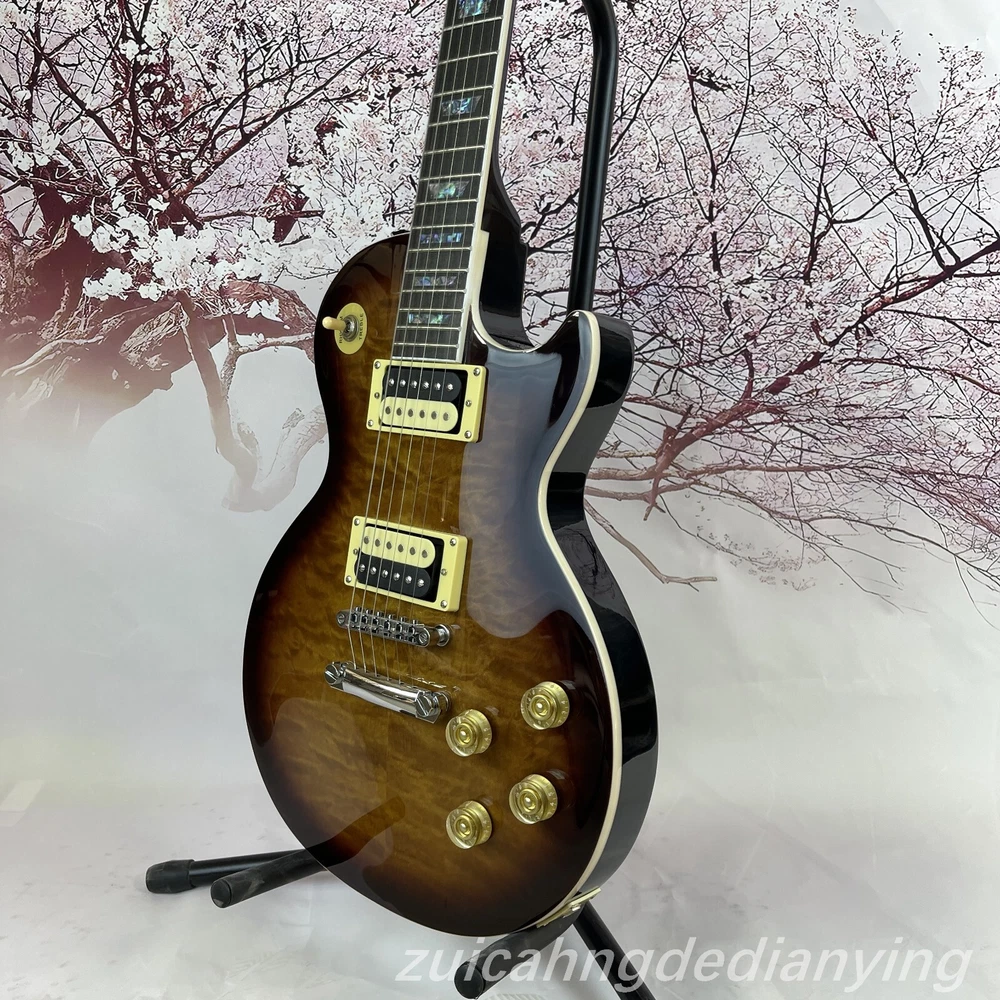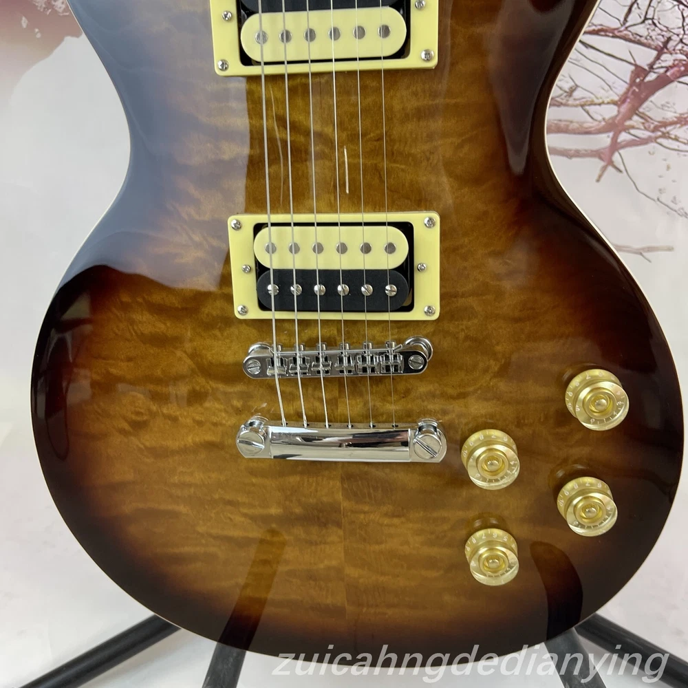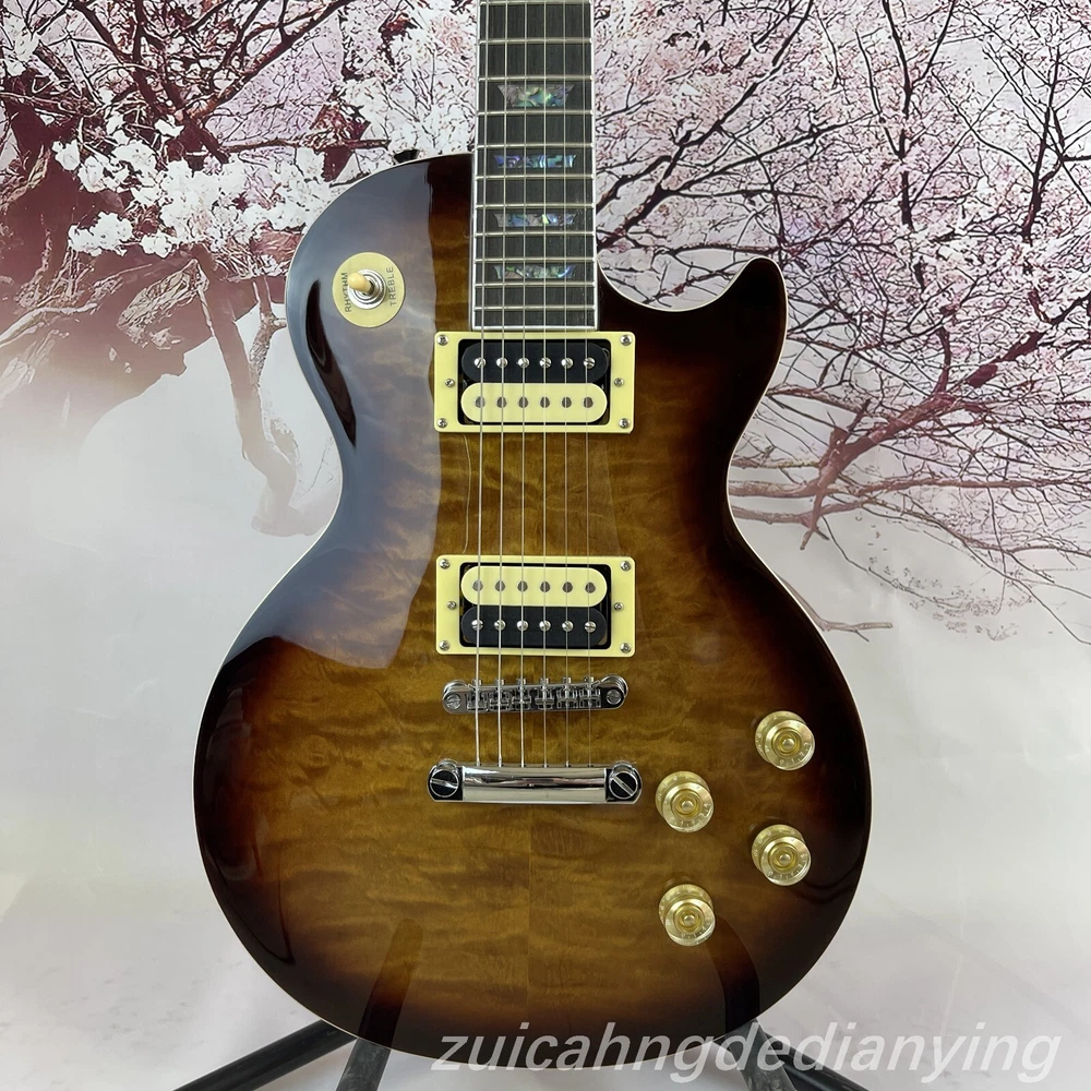 This limited time offer electric guitar features a solid brown quilted maple top and a mahogany body. The guitar is right-handed and has a 4/4 size. The neck is made of mahogany and the fretboard is made of rosewood. The guitar has 22 frets and a 6-string configuration. The set includes a cable and the guitar is perfect for professional performance. The model year is 2024 and the guitar is a custom model. The region of manufacture is China. This electric guitar is in stock in the US warehouse and can be shipped immediately after placing an order. Product quality assurance, including after-sales service. Please feel free to contact us if you have any questions.