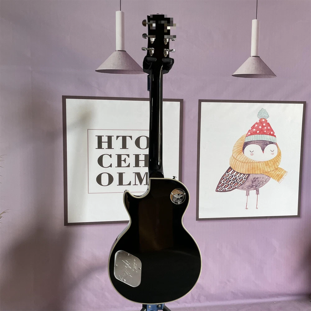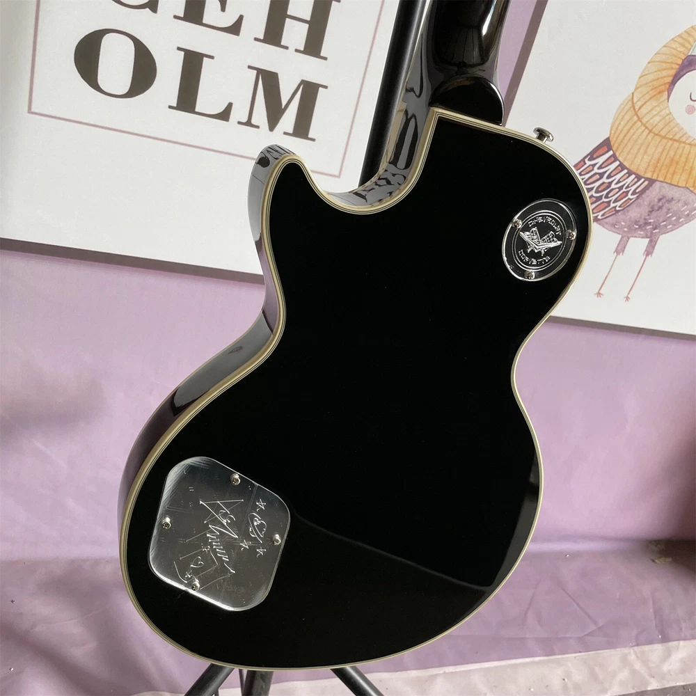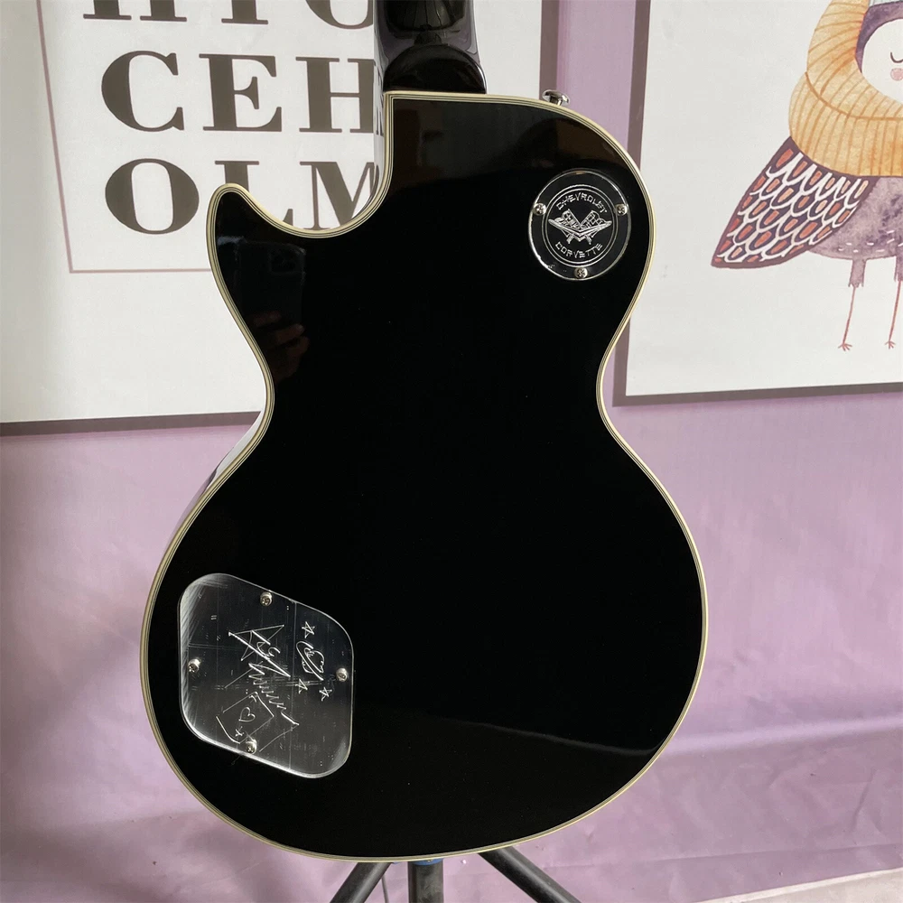 LP Custom Electric Guitar Black Body 6 String HPL Fretboard Chrome Parts 2H