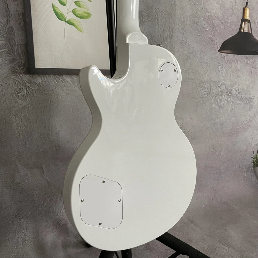 LP Custom Electric Guitar White Body 6 String HPL Fretboard Chrome Parts 2H