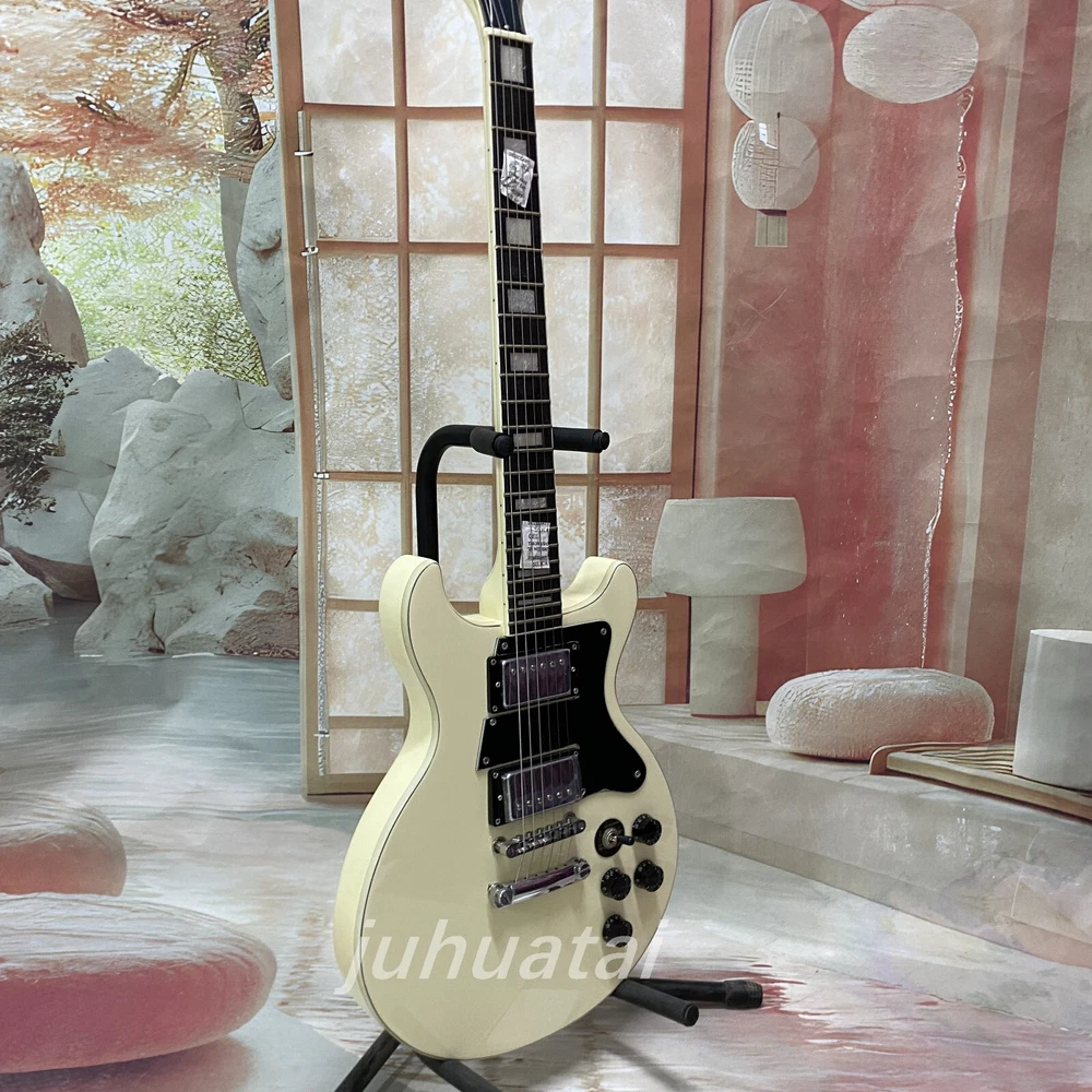 LP Custom electric guitar Beige White mahogany body H-H pickup 6 string