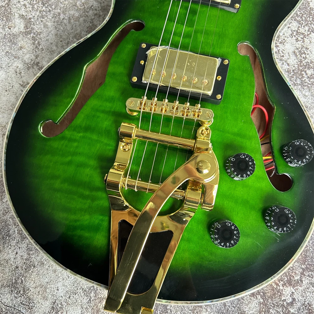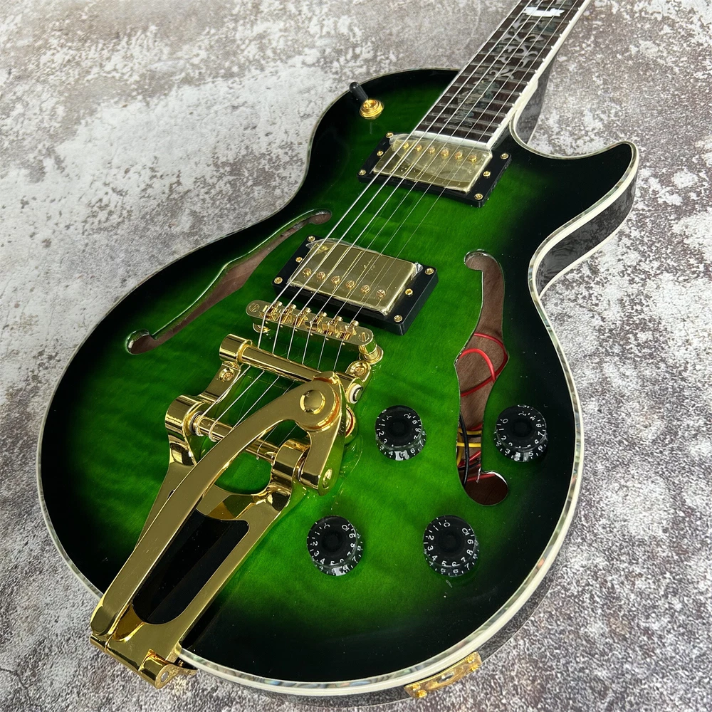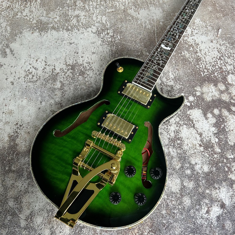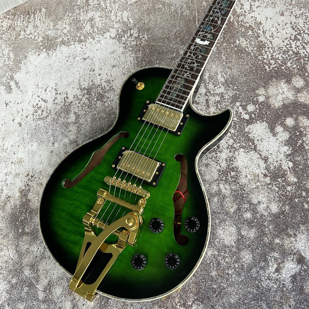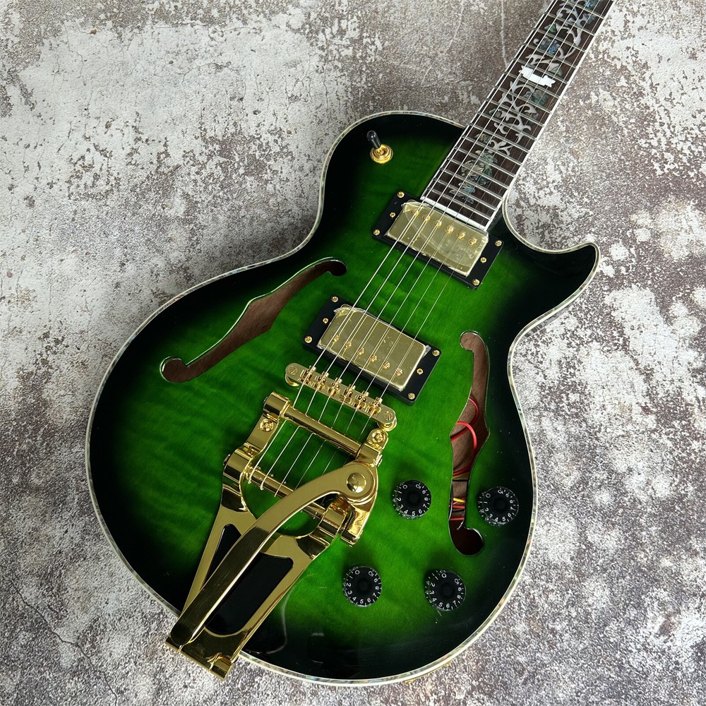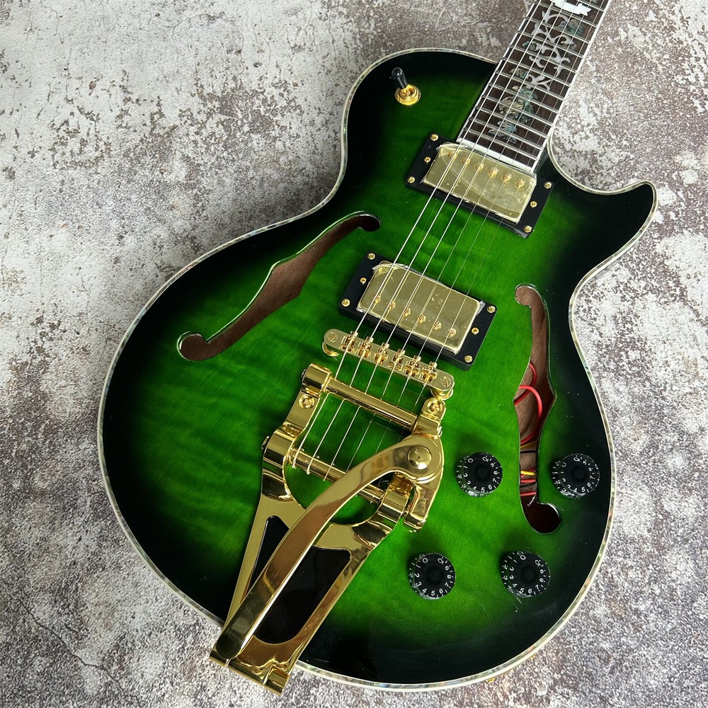 LP Style Semi Hollow Electric Guitar with Gold Hardware - Green Finish