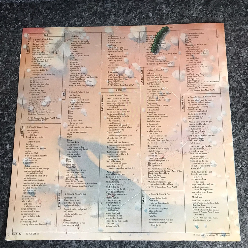 Track List A1 Cook With Fire 4:57 A2 High Time 3:21 A3 Hijinx 3:31 A4 Straight On 5:09 B1 Dog And Butterfly 5:21 B2 Lighter Touch 5:03 B3 Nada One 5:21 B4 Mistral Wind “Sleeve and inners excellent condition light shelf wear. Sent in a clear re sealable sleeve new poly lined inners added. Labels are super clean minimum spindle wear. Vinyl is clean excellent condition superb audio a very nice copy. Please see images as they form an important part of the item description. We combine postage costs to reduce shipping prices for customers outside of the UK”. 6:42