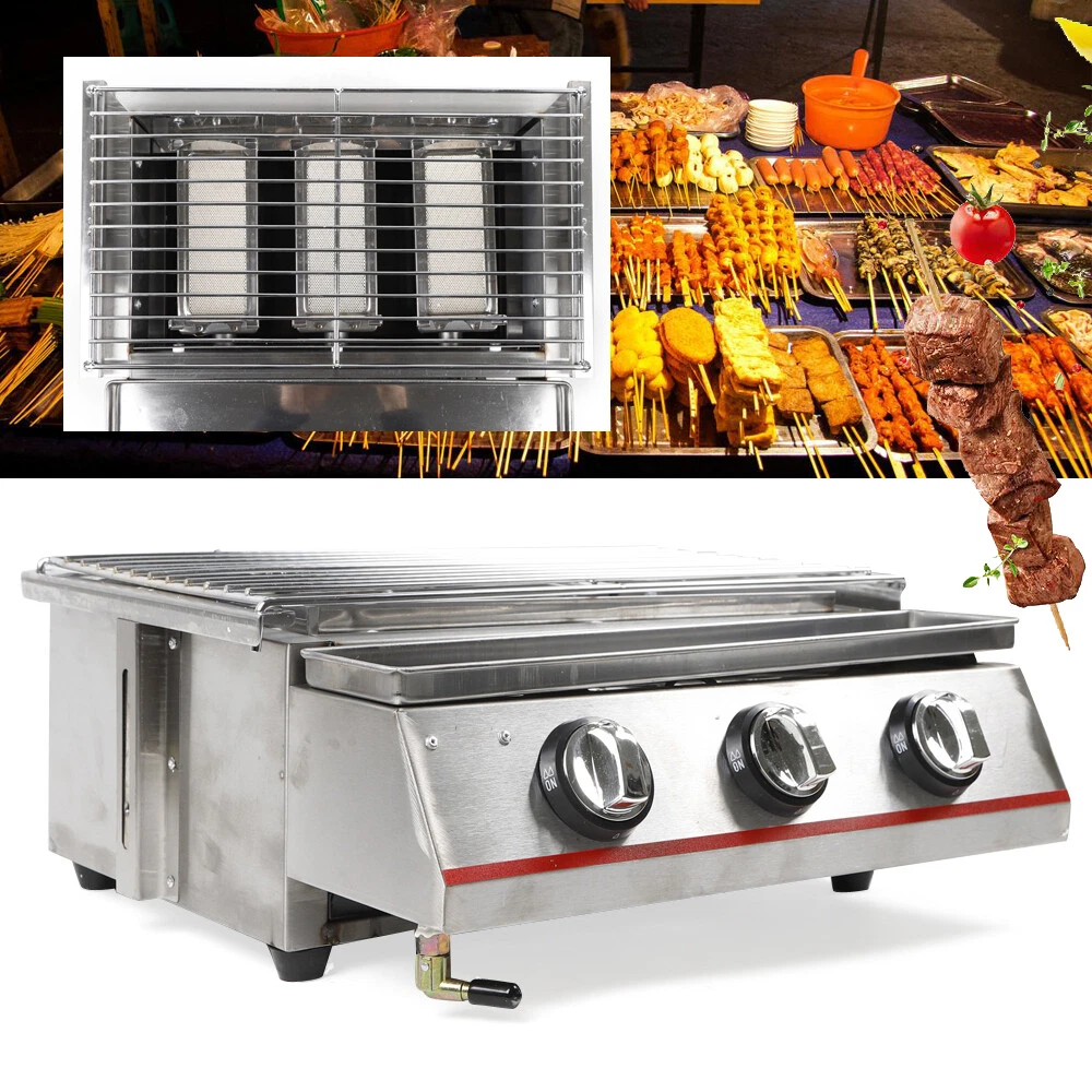 Tabletop Barbecue Grill Sear 3 Burner Side BBQ Grill Portable Camping Picnics 3 Burner commercial Gas LPG Grill for Outdoor BBQ Tabletop Cooker Stainless Steel Description Name: Dimension: 470*420*195mm/18.5"*16.5"*7.7" Shield material: Steel shield Intensity of Pressure: 2800Pa Color: Stainless Steel Grill Size: 450*250mm Weight: 6.5kg Gas Connection Diameter:8mm(inner)/10mm(outer) Feature 1. Environmental and smokeless 2. No fire, more safer 3. Keep the original taste 4. Adjustable height Package: 1*3 Burners Gas BBQ Grill Notice: 1.Machine Only, low pressure valve and hose are not equipped. 2.Usually need to use LPG, natural gas can also be used but the nozzle needs to be changed (please look for a professional hardware store). 3.This machine is forbidden to use medium and high pressure, only low pressure valve can be used. Payment Delivery details Terms of sales About us Contact us Payment We accept ebay payment 。 Fees such as import duties, taxes are not included in the item price or shipping costs. These charges are the buyer's responsibility. Delivery details Shipping: 2-9 working days to: USA Terms of sales We maintain high standards of excellence and strive for hundred percent customer satisfaction. Feedback is very important to us. We hope that you contact us immediately before you give neutral or negative feedback, so that we can address your concerns. It is impossible to address issues if we do not know about them! About us Your satis faction is our ultimate goal. We work hard to earn your trust and future business. Our certified technicians have tested each item before shipping. The unit comes with 1 year limited warranty on all manufacturing defects. a) If you receive a defective item, you may return it or ask for a discount. Please contact us within 14 days after you receive the package. b) What you returned must be intact and in its original packaging as re? u. Customer is responsible for shipping costs of the returned item. c) We will cover the cost of shipping back t with the shipping rate indicated in the registration page. We will send you a new unit or refund the full payment you paid. Thank you. Contact us Business Hour Business Hour: Monday To Friday: 8:30 AM to 5:00 PM (Beijing China time) Due to time zones, our reply to your questions may not be immediately. But within above working time, we will reply your email within 24 hours. If it's non-workdays, please kindly be patient and wait till Monday. Please contact us with ebay message. Please feel free to contact us if you have any questions. Monday To Friday: 8:30 AM to 5:00 PM (Beijing China time) Due to time zones, our reply to your questions may not be immediately. But within above working time, we will reply your email within 24 hours. If it's non-workdays, please kindly be patient and wait till Monday. Please contact us with ebay message. Please feel free to contact us if you have any questions. Item location CA /NJ /Austell Type Does not apply Brand Unbranded MPN Does Not Apply UPC Does not apply Shipping Notice Cann't Ship To Puerto Rico Alaska/Hawaii Dimension 70*420*195mm/18.5"*16.5"*7.7" Shield material Steel shield Intensity of Pressure 2800Pa Color Stainless Steel Grill Size 450*250mm Fuel Type LPG Number of Burners 3 Material Stainless Steel Item Height As shown Item Width as shown Item Depth as shown Assembly Required No Finish as shown Item Weight 6.5Kg
