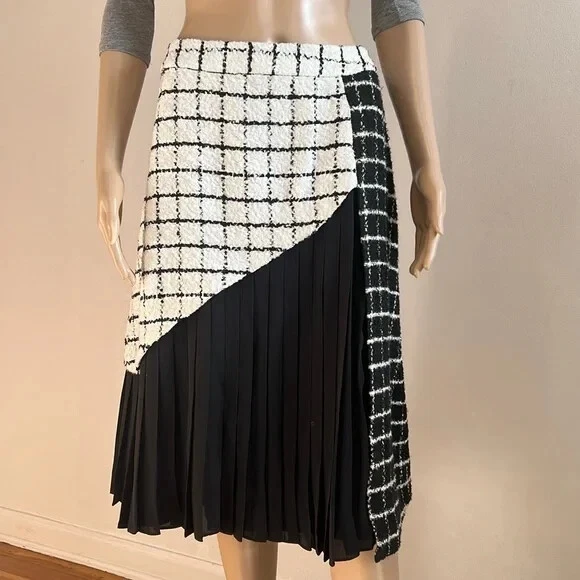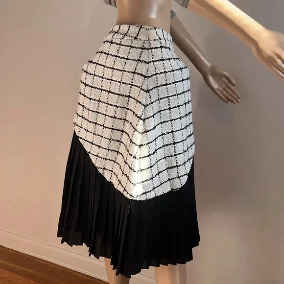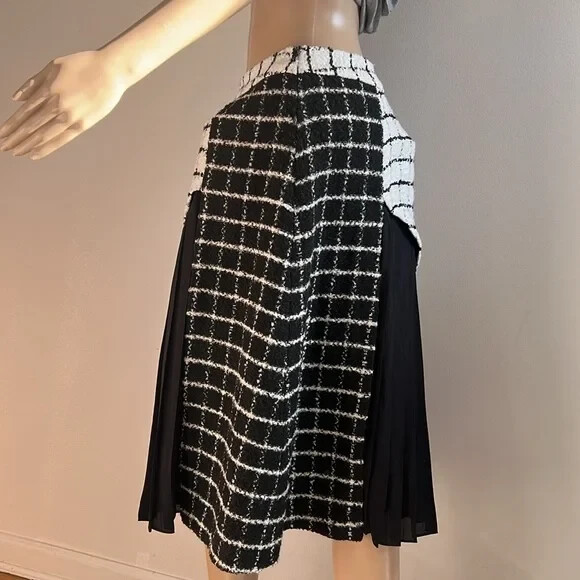 LR By Legally RED Skirt Great condition! Size 14 Approx measurements garment laying flat Waist 16.5” Length 26” Colors- White,Black Tweed Pleated accents Fully lined Side zip closure •No Returns No Holds No Trades