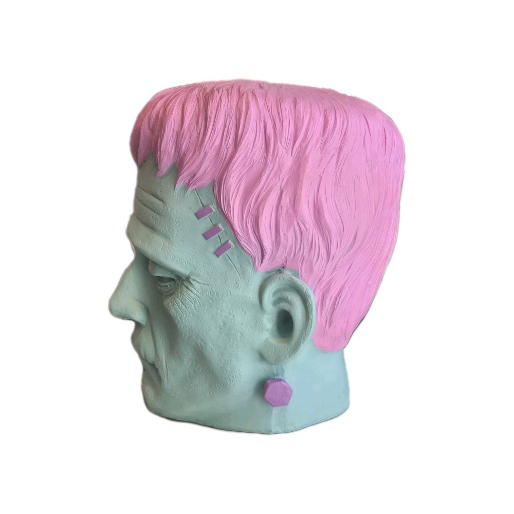NEW LARGE Pastel Shabby Chic Pink / Green Halloween Frankenstein Spooky Head Condition: New 10 1/2" Tall X 8" Wide X 10" Deep This product is a large Pastel Shabby Chic figurine of a spooky Frankenstein head, perfect for Halloween decor. The green color adds a unique twist to the traditional pink shabby chic aesthetic. The brand "Shabby Chic" signifies a style that is charming and whimsical, making this figurine a fun and festive addition to any home during the Halloween season. (Bin A21) SKU000100448PH