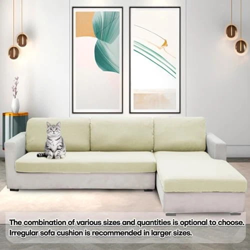 Return Policy Fast Delivery Trusted seller Sectional Couch Covers for L Shaped Chaise Lounge 1 Piece Separate Cushion Couch Universal Replacement Unique Pattern Furniture Protector with Elastic Bottom (Light Beige, Chaise Cover) Product Description 【MEASURE SIZE】1 PC included. Fit a cushion with 50-70" in length, 30-50"in width, 2-12" in height. With great elasticity, our anti-slip cushion slipcovers are available in sizes that fit most sofa replacements, box cushion, T cushion, back cushion, long chion and chaise cushion. Please refer to the Measuring Guide in the picture to measure your cushion before purchg. 【QUALITY FABRIC】Made out of 85% polyester and 15% spandex, this high quality fabric is soft, breathable, stretchy, and durable, offering you everything you would need in a seat cushion cover to help keep your cushion clean and protected while also providing ultimate comfort. 【Attractive design】The new patterned couch cushion covers feature a stylish and unique design like maze that will add a pop of personality to your living space. With a range of colors and sizes to choose from, you can find the perfect couch cushion covers to match your decor and style, Homes, Offices, Hotels, RV, Boats, Parties, Churches, Restaurants, etc. 【CUSHION COVERAGE】 fitted individual couch covers come with elastic bands and ties at the bottom that help keep the cover positioned and stationed on your couch so that it won't slip off easily.Plus, full coverage for your couch cushions, protecting them from spills, stains, and general wear and tear. 【EASY CARE & INSTALL】Our magical sofa cushions cover are machine-washable, so if they get too messy, you can clean them up quickly and easily, and then resume its use to protect your couch. They only takes one person to put on, and takes little to no time. Shipping Returns Payment Shipping Shipping is FREE to all addresses other than APO/PO boxes in the lower 48 states. All our stock ships from US-based warehouses. Shipped via USPS or UPS (depending on location and package weight) Unless stated otherwise, all orders will ship within 24-72 hours of your payment being processed. Check our feedback to see the great reviews of FAST shipping we offer. Returns Seller does not accept returns Payment We currently accept payment via eBay managed payments only. Once payment is cleared, we will dispatch your shipment within 1-3 business days. Please refer to the "Shipping" tab for more information regarding shipping speed to your destination.