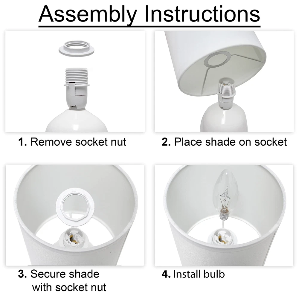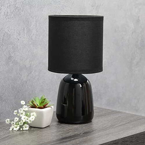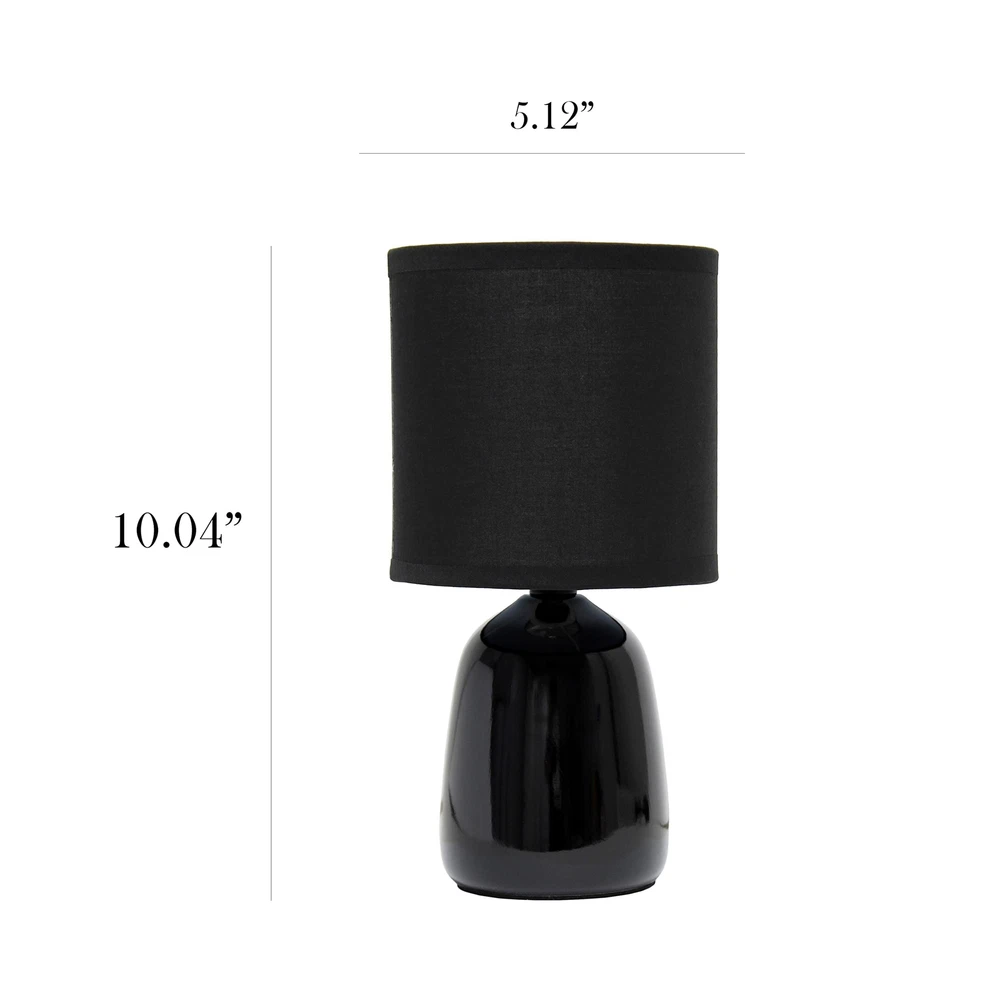 A traditionally styled table lamp base solid in the color of your choice is paired with a matching fabric drum shade. It's perfectly designed to sit on the nearest table, nightstand, college dorm or office desk. Sometimes, a timeless styled lamp is all you need for a final touch in designing your ideal space! TRADITIONAL DESIGN: A timeless style lamp in a thimble shaped base and a matching TC fabric shade is the perfect lighting addition to your space and can compliment almost any décor style! ACCESSIBLE SWITCH: An easily accessible gear (rotary) switch is located on the cord of this table lamp to allow a quick and easy on/off function as needed. Lamp is also equipped with a 5 foot black plug in cord rooted at the base. PRODUCT SIZE: Overall product size is L: 5.12" x W: 5.12" x H: 10.04" and weighs 0.77 lbs. The shade of this lamp measures Dia: 5.12" x H: 5.2". LAMP IS A MINI LAMP. ASSEMBLY & USE: Product ships assembled and will only require you to secure the lamp shade to the base using the provided socket nut prior to use. BULB REQUIREMENT SOLD SEPARATELY: This table lamp uses 1 x 40 watt equivalent type B10 E12 candelabra base bulb, which is not included in your purchase but can be easily found online or your local hardware .