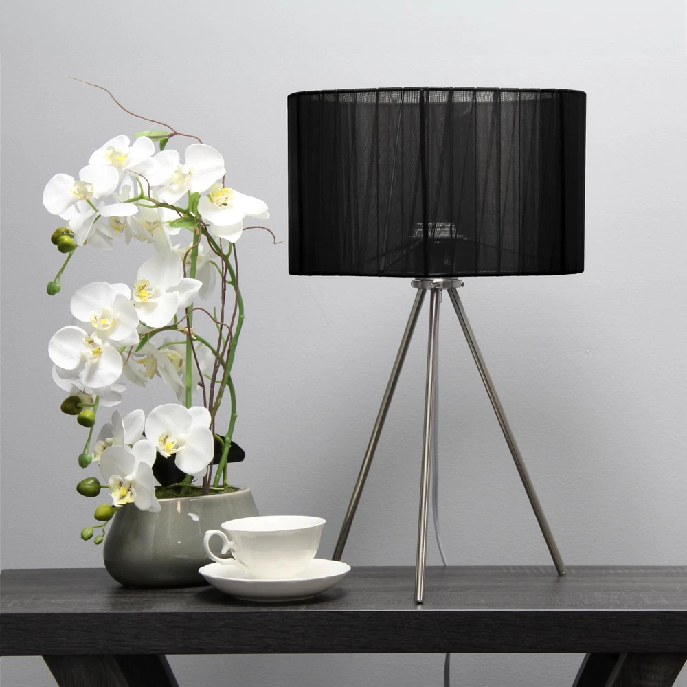 LT1156-BLK Modern Brushed Nickel Tripodal Table Lamp for Living Room, Dining ...