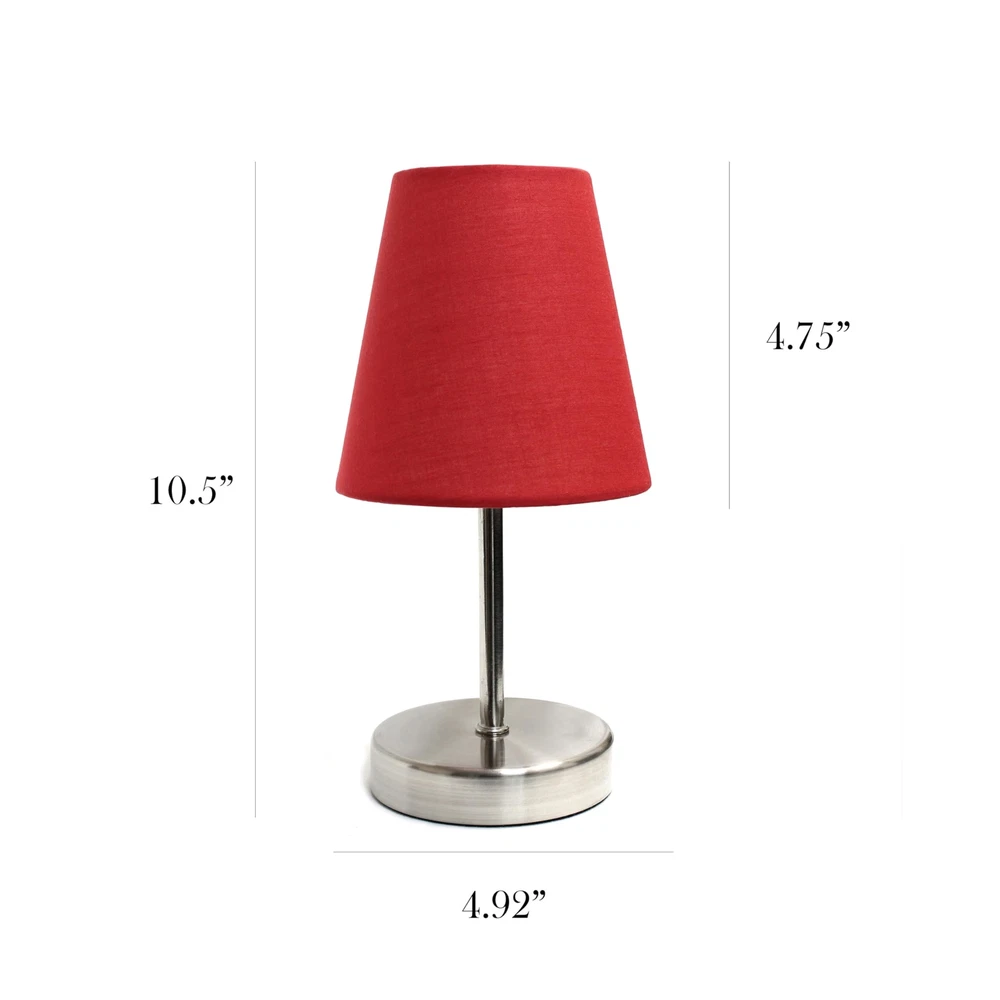 Introducing the 10.5" Stylish Mini Pop of Color Table Lamp in Sand Nickel, where modern elegance meets vibrant fun. The lamp’s sleek sand nickel base provides a sophisticated foundation, while the bold, colorful shade adds a dynamic touch that enlivens any setting. Standing at a petite 10.5 inches, it’s the ideal size for adding a burst of personality to smaller spaces, from bedside tables to desks. This lamp’s striking combination of chic sand nickel and playful shade offers a stylish way to brighten your home with a pop of color and contemporary flair. CHIC AND MODERN AESTHETIC: The modern design and unique finish create a sophisticated accent piece for various décor styles. SAND NICKEL FINISH: Features a sleek sand nickel base that adds a contemporary and refined look with a subtle pop of color. STYLISH ACCENT PIECE: Adds both functionality and a touch of sophistication to any room, making it a delightful addition to your space. EASY TO USE: Convenient on/off switch on cord for effortless operation. BULB REQUIREMENT: This table lamp uses 1 x 60-Watt equivalent Type B E12 candelabra base bulb (not included).