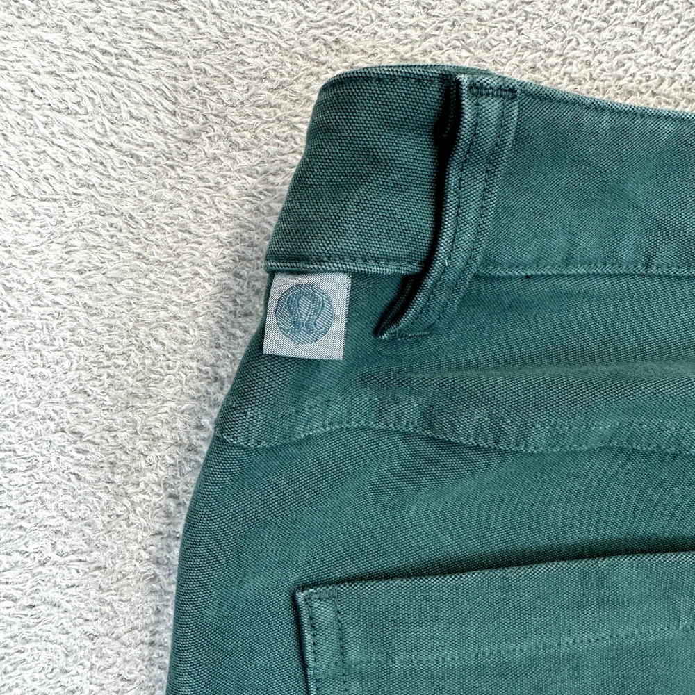 Waist Size: 34 in Rise: Mid (10-12 in) Fabric Type: Canvas Product Line: ABC Pant Handmade: No Vintage: No Pattern: Solid Features: Stretch Season: Fall, Spring, Summer, Winter Leg Style: Straight Accents: Five Pocket Design Color: Green Theme: City, College, Hipster, Logo, Preppy Garment Care: Machine Washable Closure: Button, Zip Fit: Slim Inseam: 32 in Type: Pants Size: 33 Material: Cotton, Elastolefin, Polyester Pocket Type: 5-Pocket Design Brand: Lululemon Occasion: Business, Casual, Workwear Size Type: Regular Front Type: Flat Front Personalize: No Style: Chino Department: Men