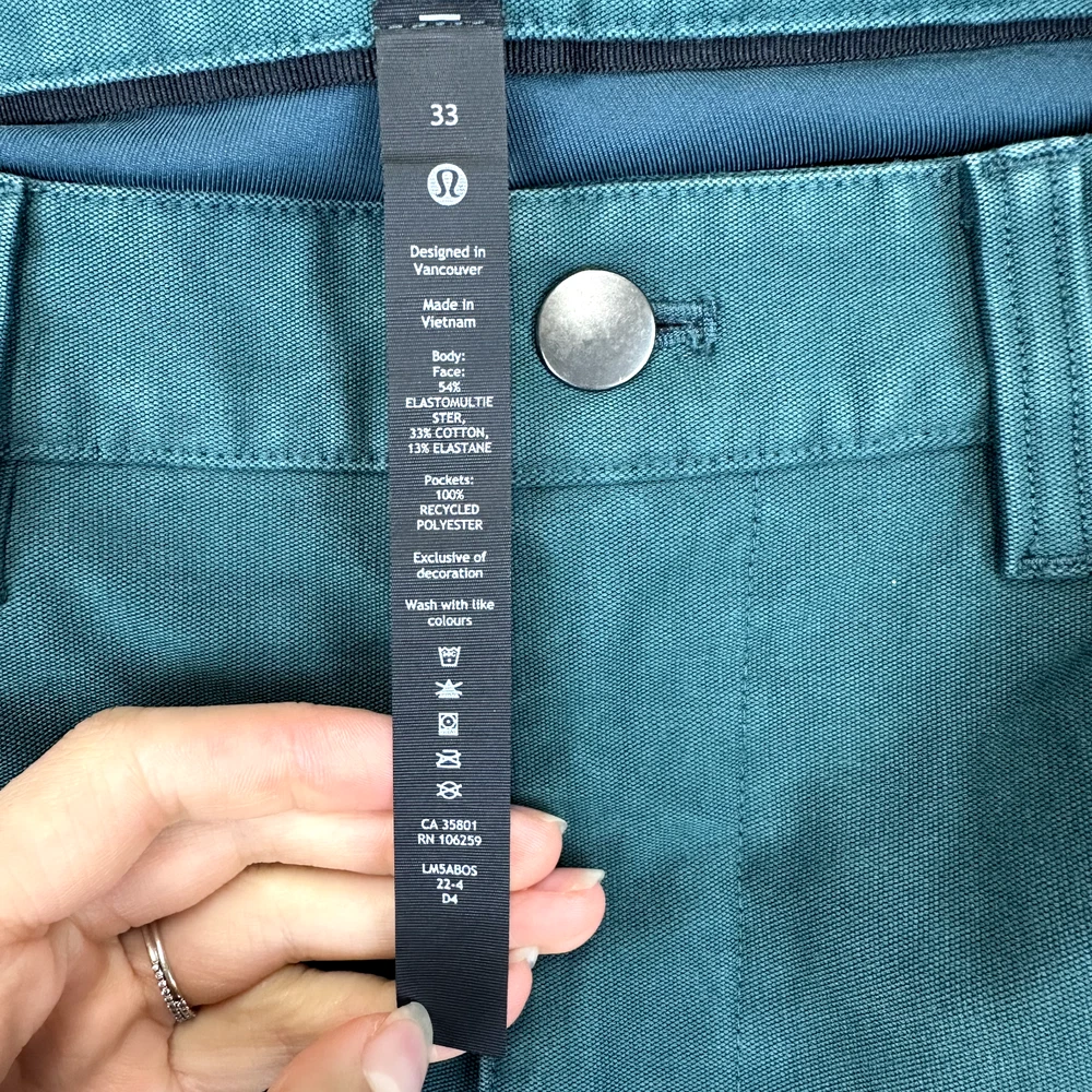 LULULEMON ABC Slim Fit Utilitech Pants Green Jeans Stretch Mens 33 x 34