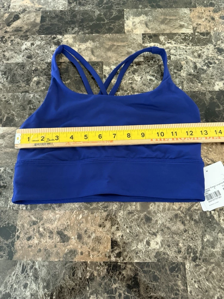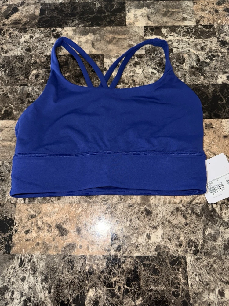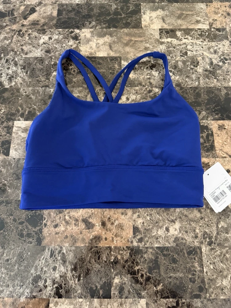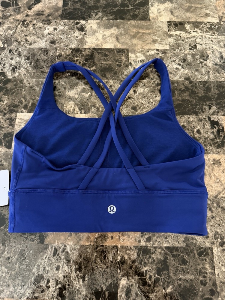 The Lululemon Energy Bra Longline in size 6 and Deep Sea Blue color is a stylish and functional sports bra perfect for active women. It features a pullover closure, crossback strap style, and medium support level, making it ideal for a variety of performance activities. Made from a blended fabric of nylon and spandex, this bra offers full cup coverage with removable pads for added comfort and breathability. The deep sea blue color adds a touch of vibrancy to your activewear collection, while the logo accents on the straps give it a sporty look. Machine washable for easy care, this bra from the Energy product line by Lululemon is a must-have for any woman's activewear wardrobe.