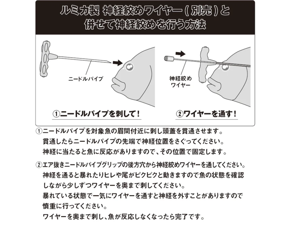 LUMICA Ikejime Fish Nerve Tightening Needle Pipe 160mm Item Description Pipe only package. Please see the title, Item specifics. Payment Choose from a variety of payment methods. Shipping Please check the Shipping and Payment tab. Shipping costs vary depending on the delivery area and shipping method. International Buyers - Please Note: Import duties, taxes, and charges are not included in the item price or shipping cost. These charges are the buyer's responsibility. Please check with your country's customs office to determine what these additional costs will be prior to bidding or buying.