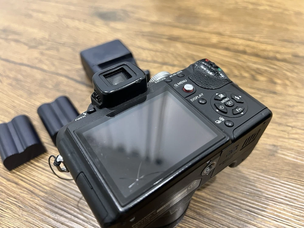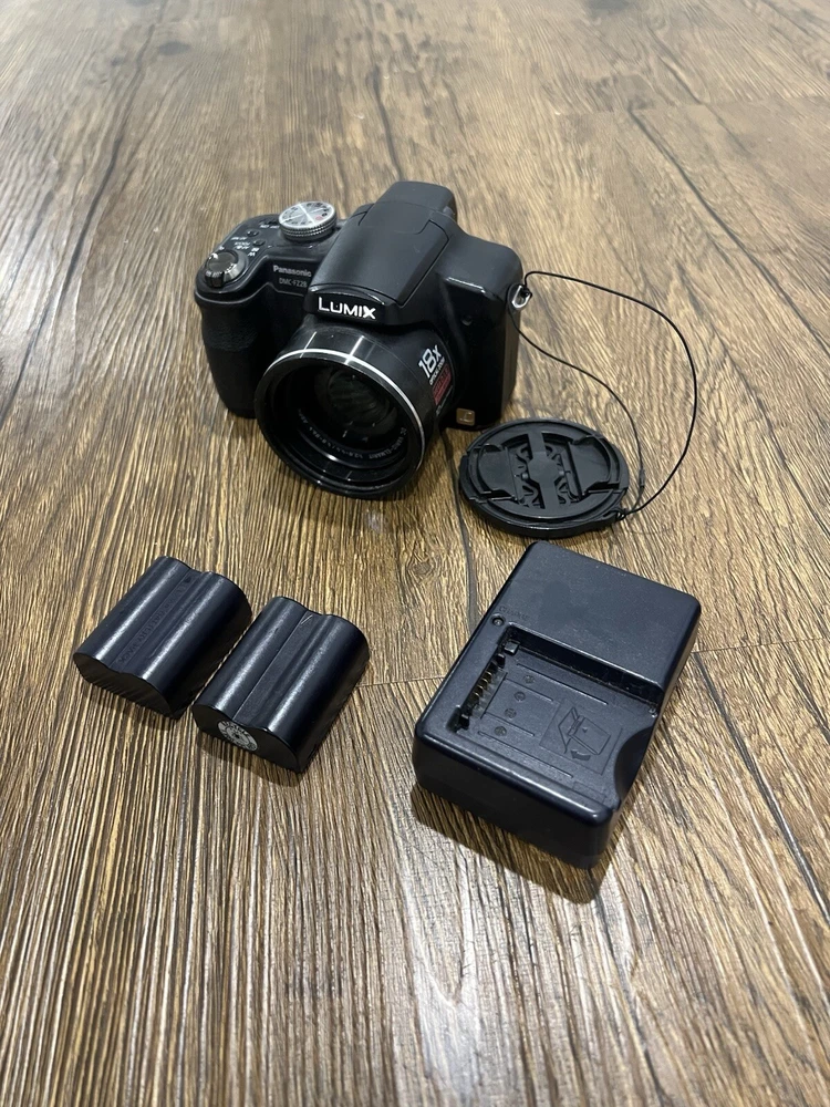 LUMIX Panasonic Camera Sold as is Comes with two batteries and charger Has a crack in the screen as pictured I know it turns on just selling for my sister