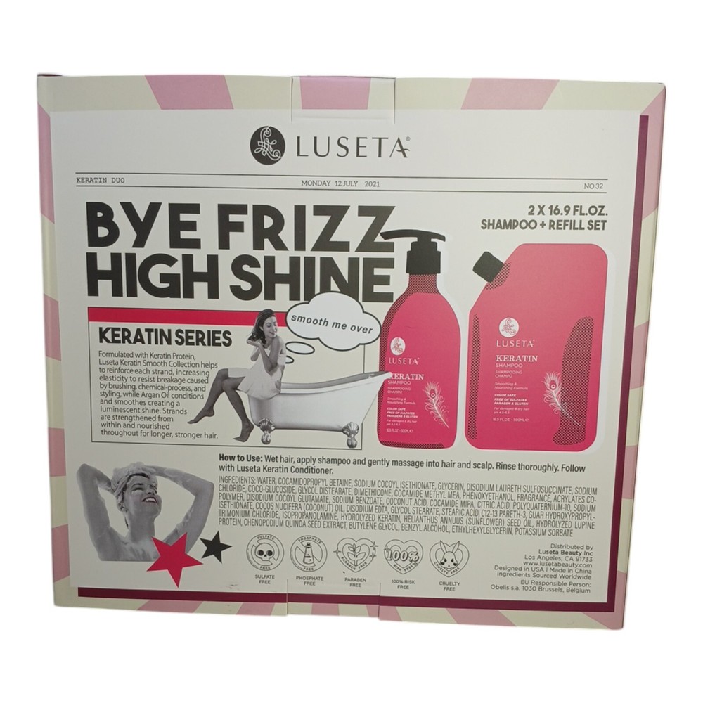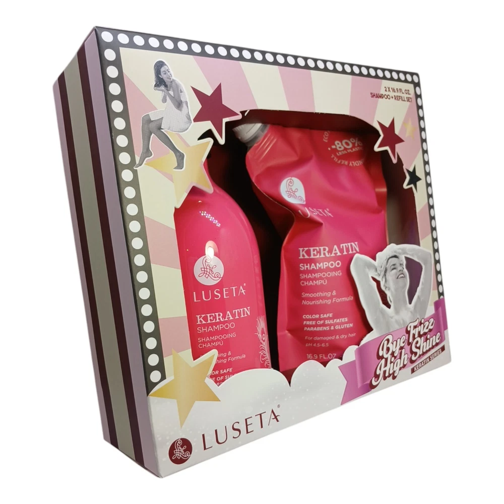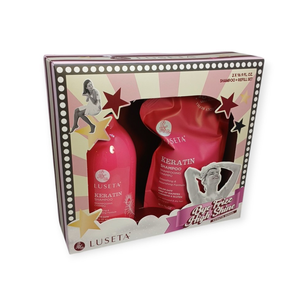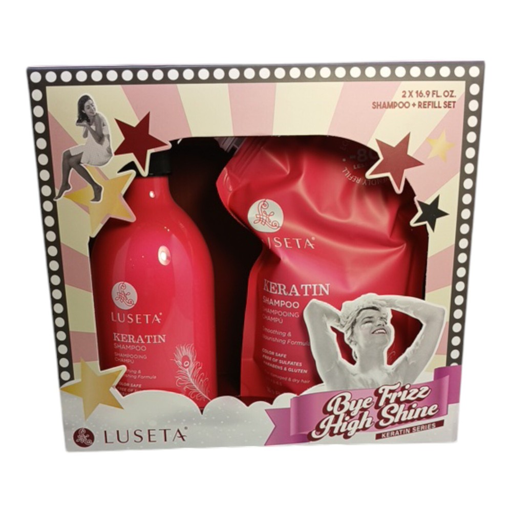 Revitalize your hair with the Luseta Keratin Shampoo Set, a luxurious blend designed specifically for those seeking to rejuvenate and restore damaged, dry hair. This impeccable duo includes a sleek, pump bottle paired with an eco-friendly pouch refill, together offering a substantial 33.8 oz of transformative hair care magic. Infused with keratin, a powerhouse protein known for its strength-enhancing properties, this shampoo deeply penetrates to repair and fortify while enhancing vibrancy and protecting colored locks. Treat your hair to a spa-like experience with every wash, leaving it feeling silky-smooth, beautifully nourished, and unbelievably revitalized. Experience the ultimate in hair transformation and embrace your most radiant, resilient hair yet!