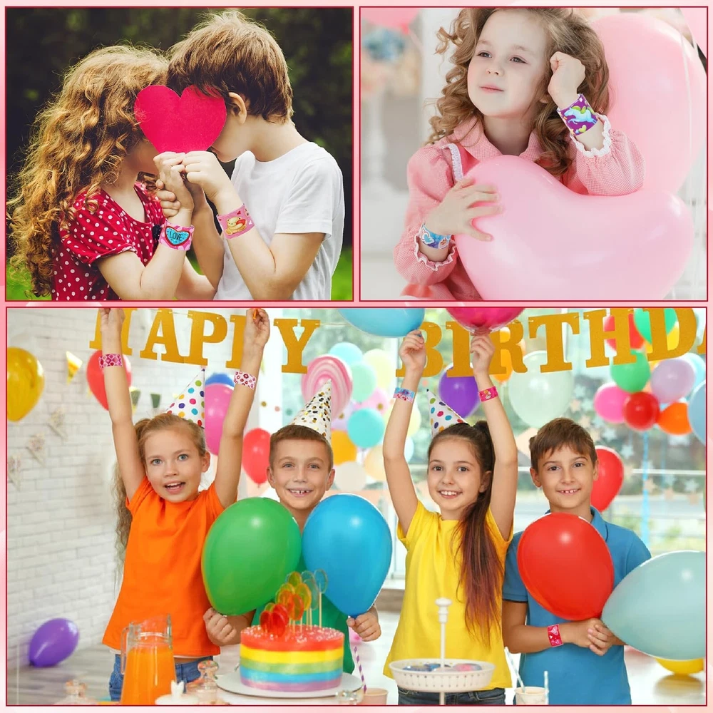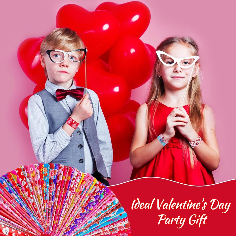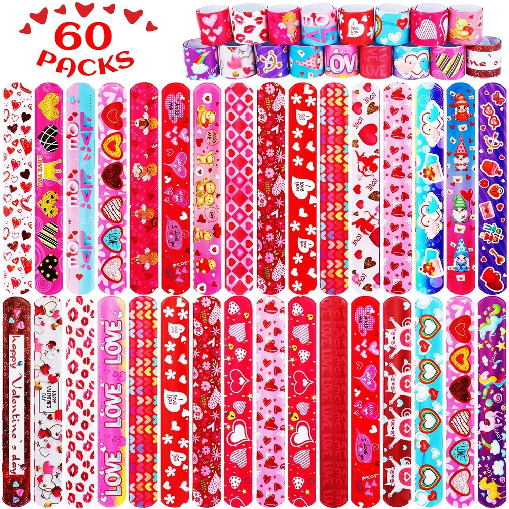 LUYI 60 Pcs Valentines Day Slap Bracelets Wristbands Valentines Day Gifts for Kids Party Supplies Toys School Class Classroom Exchange Birthday Game Prizes Goodie Bag Fillers Product Details Style: 60--SlapBracelets Brand: LUYI MPN: 1 UPC: Does not apply EAN: Does not apply Color: Red,pink Material: Alloy Steel Brand: LUYI Theme: Love Occasion: Valentine's Day Manufacturer: LUYI Age Range (Description): Kid Package Dimensions: 9.09 x 5.83 x 0.67 inches Item Weight: 15.2 ounces Country of Origin: China Department: Unisex VALENTINES DAY GIFTS FOR KIDS:Newest 60 pcs Valentines slap bracelets variety of patterns are printed on the surfaces of the valentine snap bracelets bulk,such as the pattern of heart,mermaid,donut,gift boxes,sweet and warm words,come with bright colors,it must be a hit and will add great fun to your Valentines party favors Unique Valentines Designs:Total 60pcs Valentines slap bracelet toys with 25 different styles,they are all made of quality non-toxic paper pulp, make sure it is safe.Ideal Valentine notes IDEAL Valentines day Gifts:Happy Valentine's Day - Valentines party favors set is suitable for classroom school gift exchange,valentines day gift exchange,valentines day cards gifts,valentines toys,give away,student awards,classroom game prize,birthday party and so on.Spend a beautiful Valentine's Day Easy to Wear:Just simply slap the bracelet on your wrist,it will form a comfortable fitted grip based on your wrist size.You can also stack them up, collect them,it will become a special valentines day gift decor or fun party supplies.fit all wrists Premium Material:The valentines slap bracelets are made of durable metal core inside.These valentines party favors for kids are tightly wrapped with soft PVC material on the outside,which is safe for children wearing