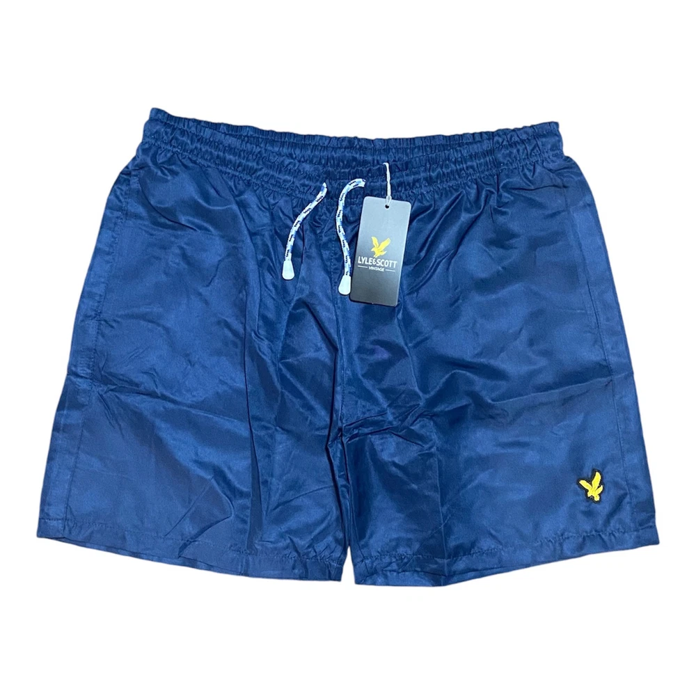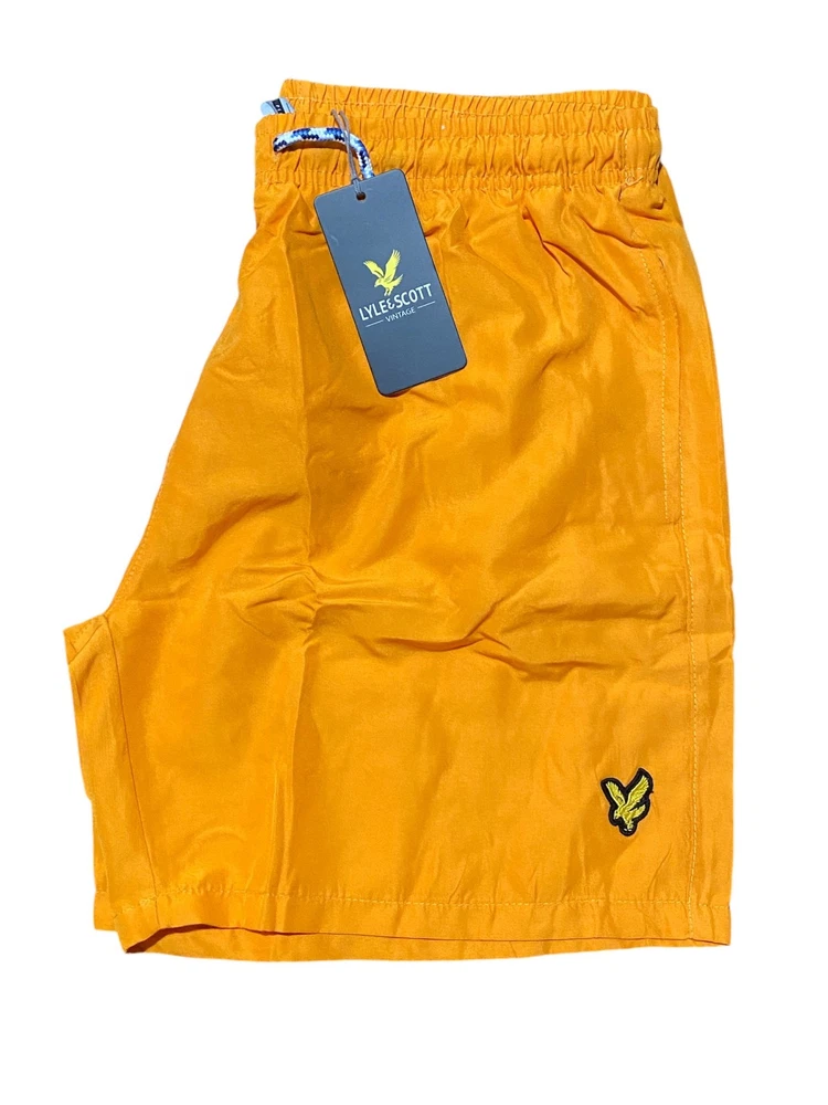 LYLE AND SCOTT SWIM SHORTS FOR MEN IN 4 COLOURS Lyle & Scott Classic Swim Shorts styling with elasticated waistband and drawstring. Featuring a mesh lined brief for added comfort and support, 2 side pockets and a velcro-fastened back pocket. Embroidered golden eagle logo on the left leg. Leg Length 40 cm. COLOURS : BLACK, DARK NAVY BLUE, ROYAL BLUE,ORANGE SIZES : SMALL, MEDIUM, LARGE, XL, XXL PLEASE CHECK SIZE CHART BEFORE YOU BUY Size Waist ( (inches) Length ( (inches) Small 28 14 Medium 30 15 Large 32 16 XL 34 17 XXL 35 17.5