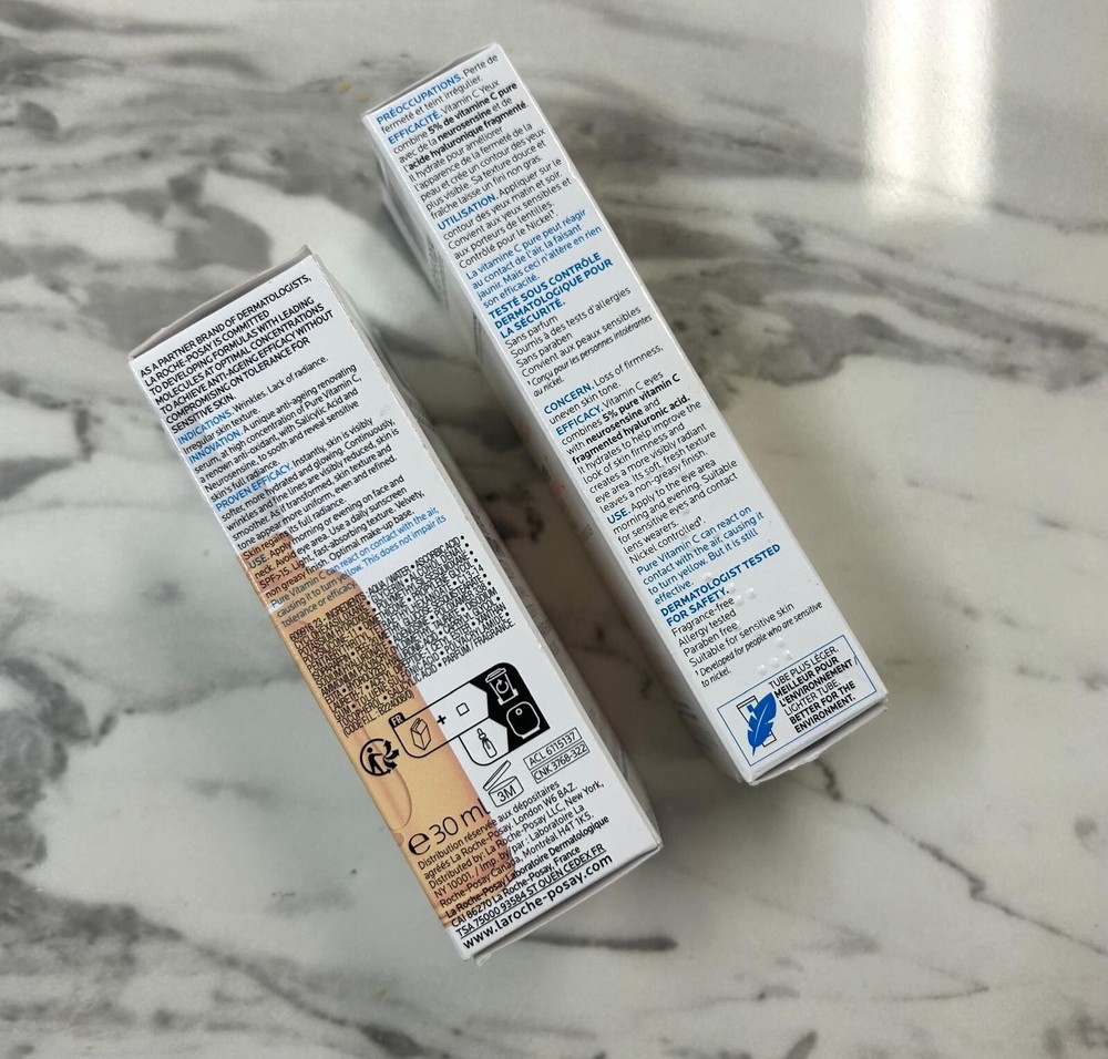 La Roche-Posay Skincare set Contains: PURE VITAMIN C 10 BRIGHTENING SERUM 30ml $74.95 (AUD) (Vitamin C Anti-wrinkle serum for sensitive skin) La Roche-Posay Redermic [C] Eyes 15ml $49.95 (AUD) (Anti-ageing eye cream) La Roche-Posay’s vitamin C face serum is a brightening serum with anti-ageing benefits that’s formulated with a combination of concentrated 10% vitamin C & salicylic acid, helping boost skin’s radiance & skin tone through exfoliation, visibly reducing appearance of wrinkles, improving skin texture & more The formulation also includes Neurosensine & Thermal Spring Water which help support skin’s moisture barrier function, helping minimise any discomfort - making this vitamin C serum suitable for use on sensitive & reactive skin Vitamin C Eye Cream is specifically designed for the delicate skin around the eye area contours which is often the first area of the face to show signs of ageing Specifically designed to tackle signs of ageing around the eyes, including, wrinkles, loss of firmness, uneven complexion, discolouration, loose skin & sensitive skin Formulated with Vitamin C, which is recognised for its anti-ageing & complexion brightening effects and combined with other anti-ageing ingredients to brighten, plump & smooth as well as reducing appearance of fine lines and wrinkles Brand new, boxed (have duplicates) RRP $125 value, selling together for $90 ONO Pls note all my makeup and skincare items are genuine and brand new. All were purchased at full retail price within this year - I just have a major shopping addiction and beauty is my kryptonite but at the end of the day I only have one face so am trying to downsize as Ive run out of space!! Having a MASSIVE clear out so take a sec to check out my other listings - am selling loads of clothes (mix of BNWT, designer, fashion, pre loved and vintage) plus bags and shoes as well as loads of beauty, makeup and skincare. Am open to reasonable offers and happy to combine postage - will also consider discounts if purchasing multiple items #beauty #makeup #powder #cosmetics face base likenew, complexion products, Sephora, Mecca trending professional viral TikTok