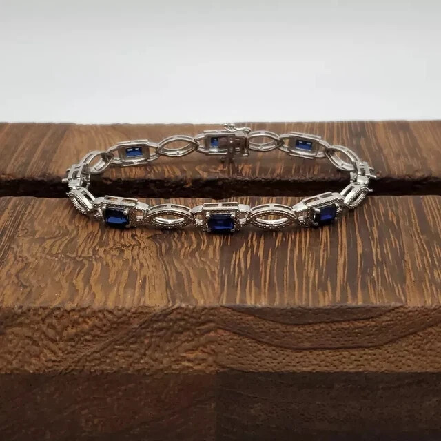 12ct Lab Emerald Sapphire Wedding Tennis Bracelet 14K Gold Plated