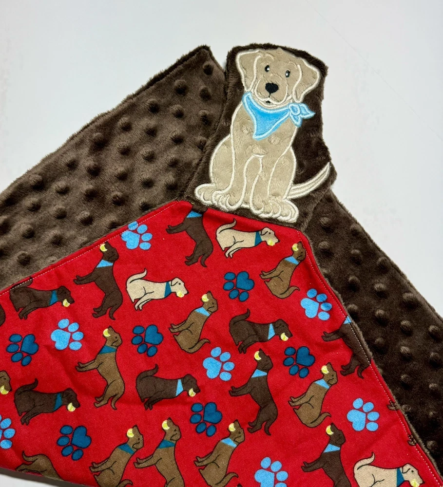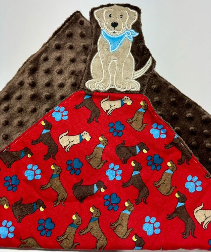Lab Dog Puppy Baby Lovey Security Blanket Appliquéd Flannel Minky Dog Gift